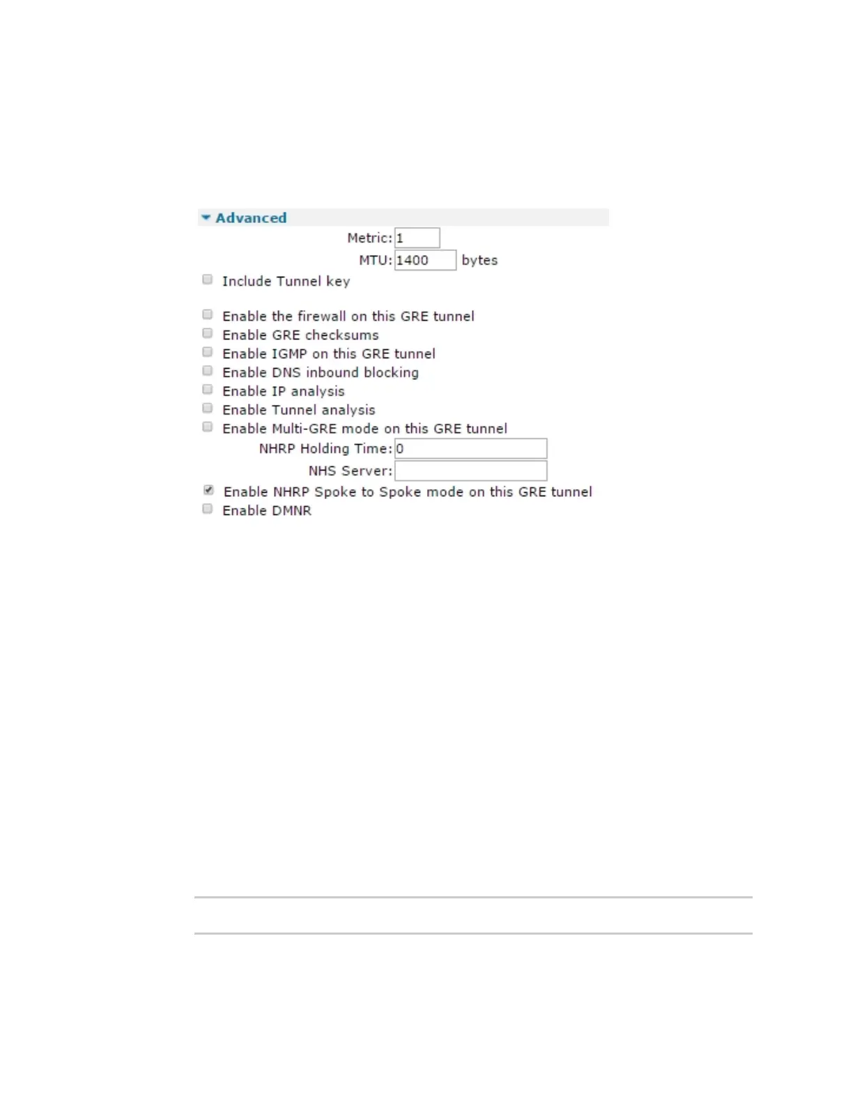 1. Go to Configuration > Network > Interfaces > GRE >Advanced.