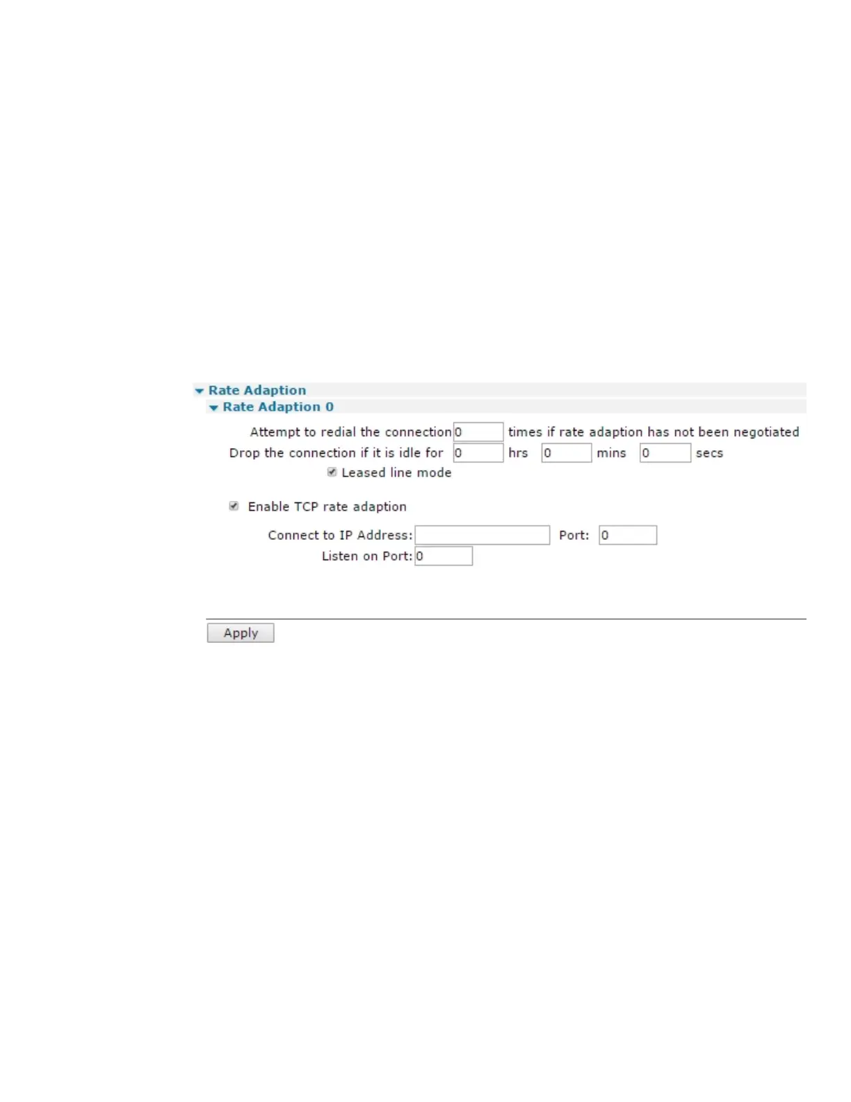 1. Go to Configuration > Network >Interfaces > Serial >Rate Adaption.