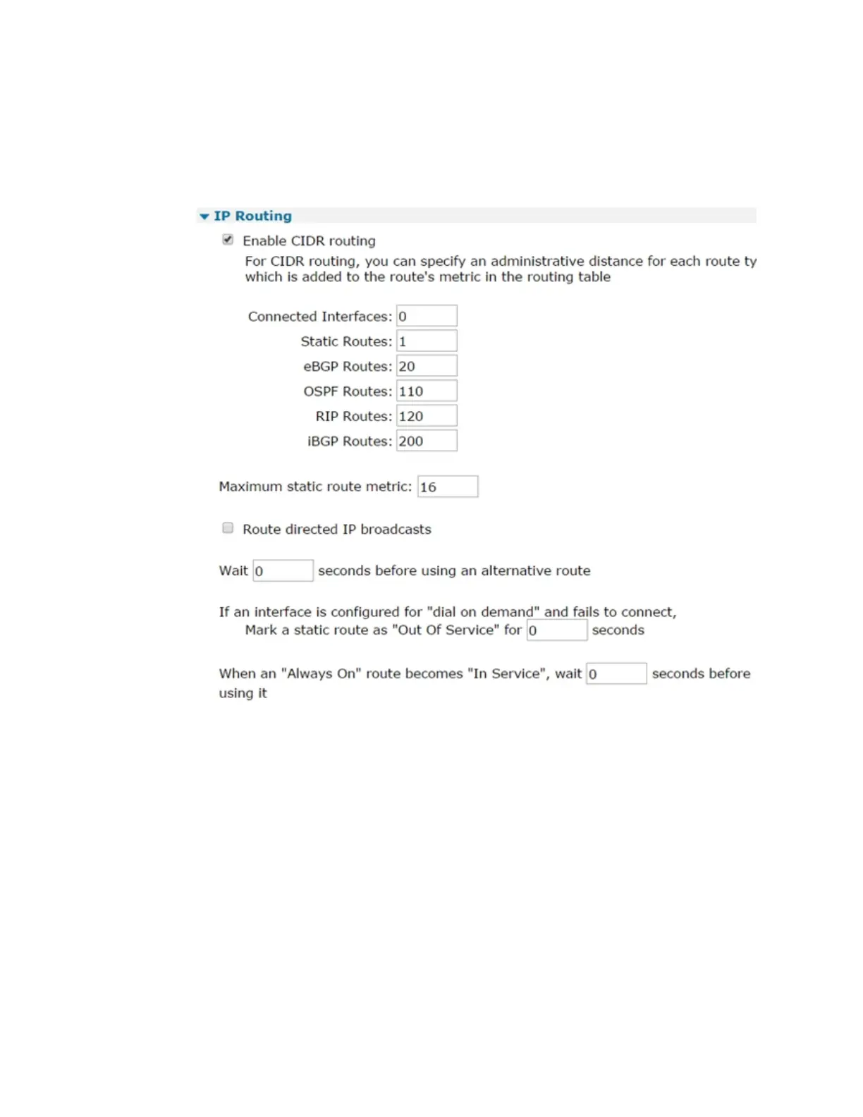 1. Go to Configuration > Network > IP Routing/Forwarding >IPRouting.