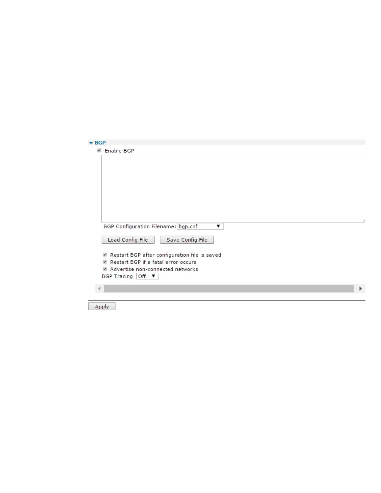 1. Go to Configuration > Network > IP Routing/Forwarding > BGP.