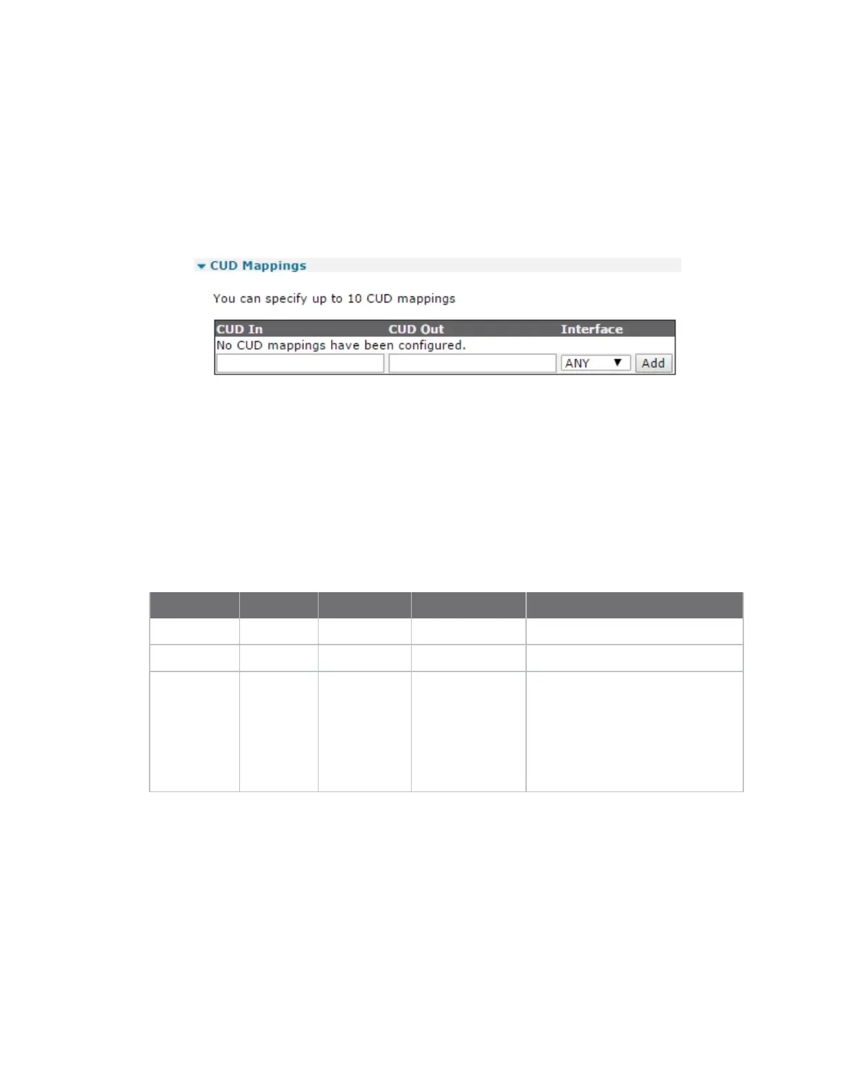 can specify the CUD In values, corresponding CUD Out values and to which interfaces the