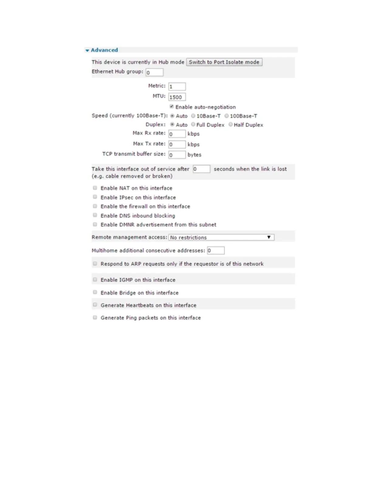 If the router is running in Port Isolate mode, the following will be displayed, with an option to