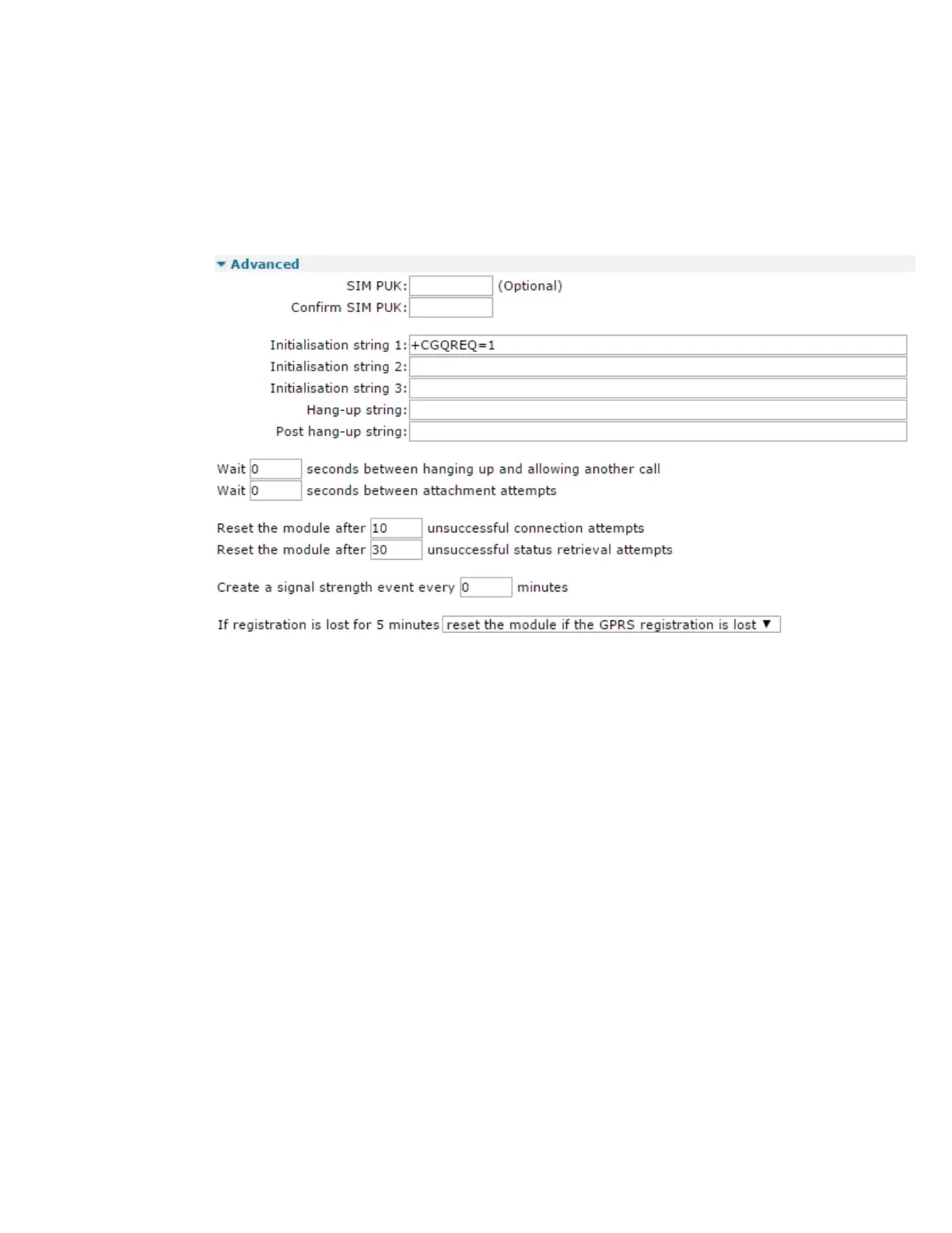 These parameters (Initialisation string 1, Initialisation string 2, Initialisation string 3)
