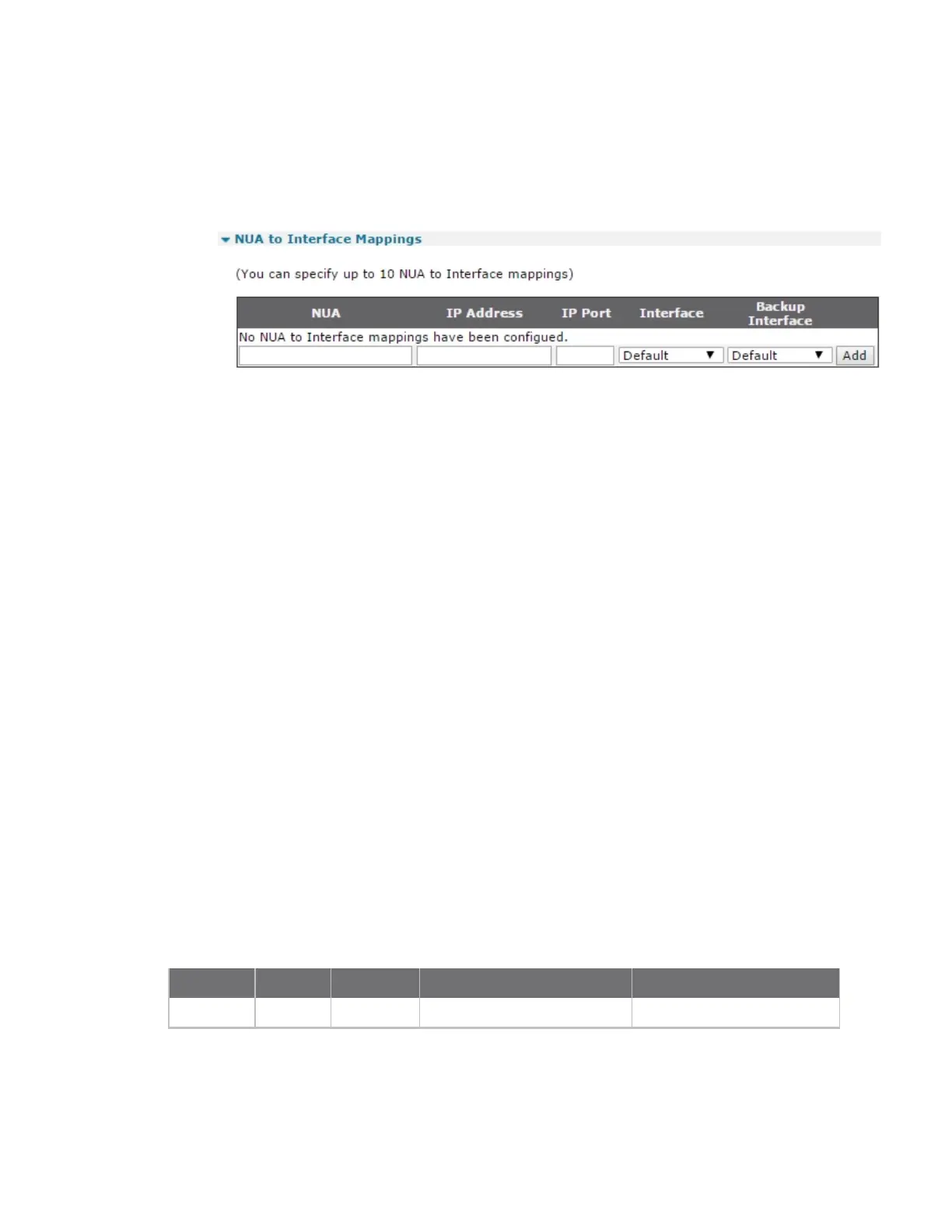 2. Enter NUAto interface mappings. The NUA to InterfaceMappings page contains a table to