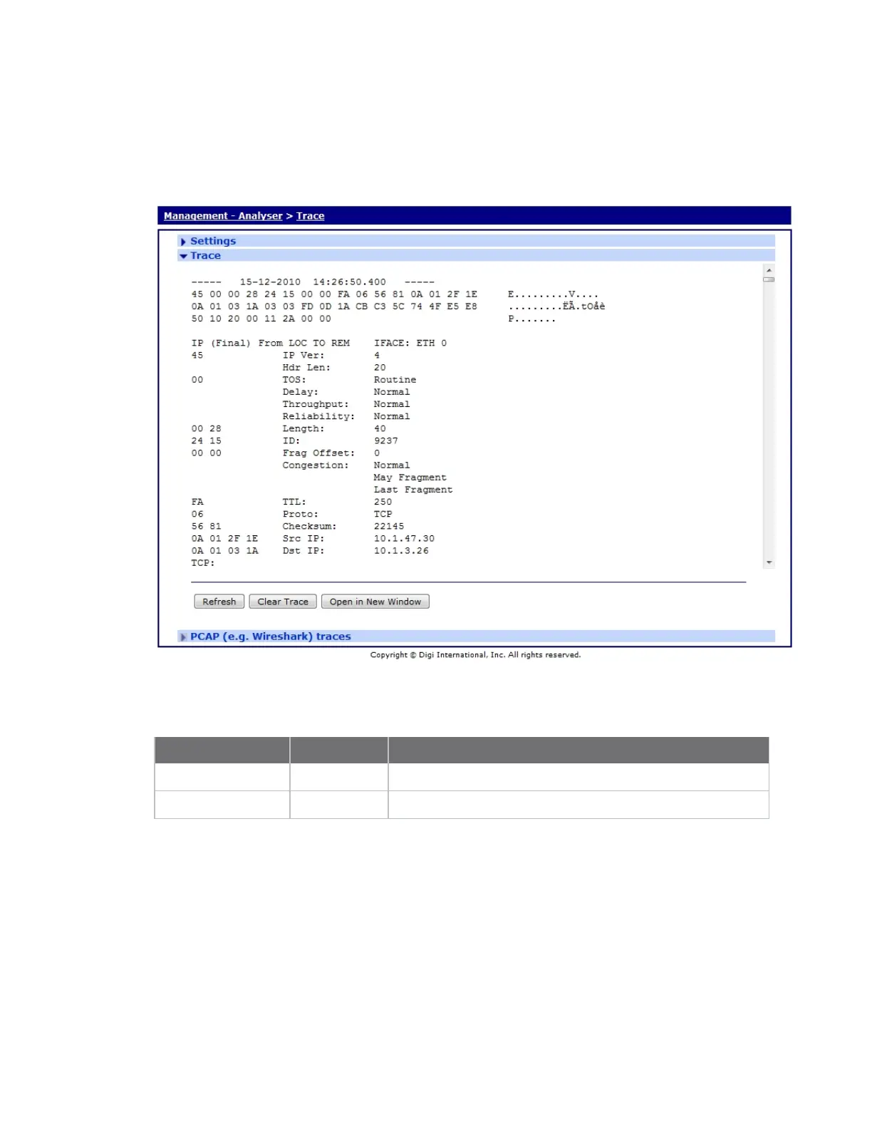 Go to Management > Analyser > Trace to view the current Analyser trace.