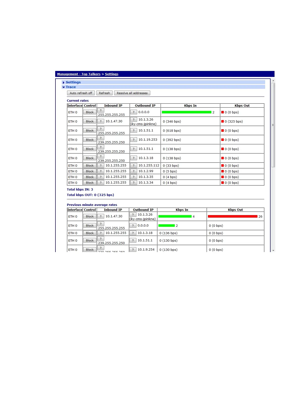 Go to Management > Top Talkers > Trace to show the current top talkers trace. For example:
