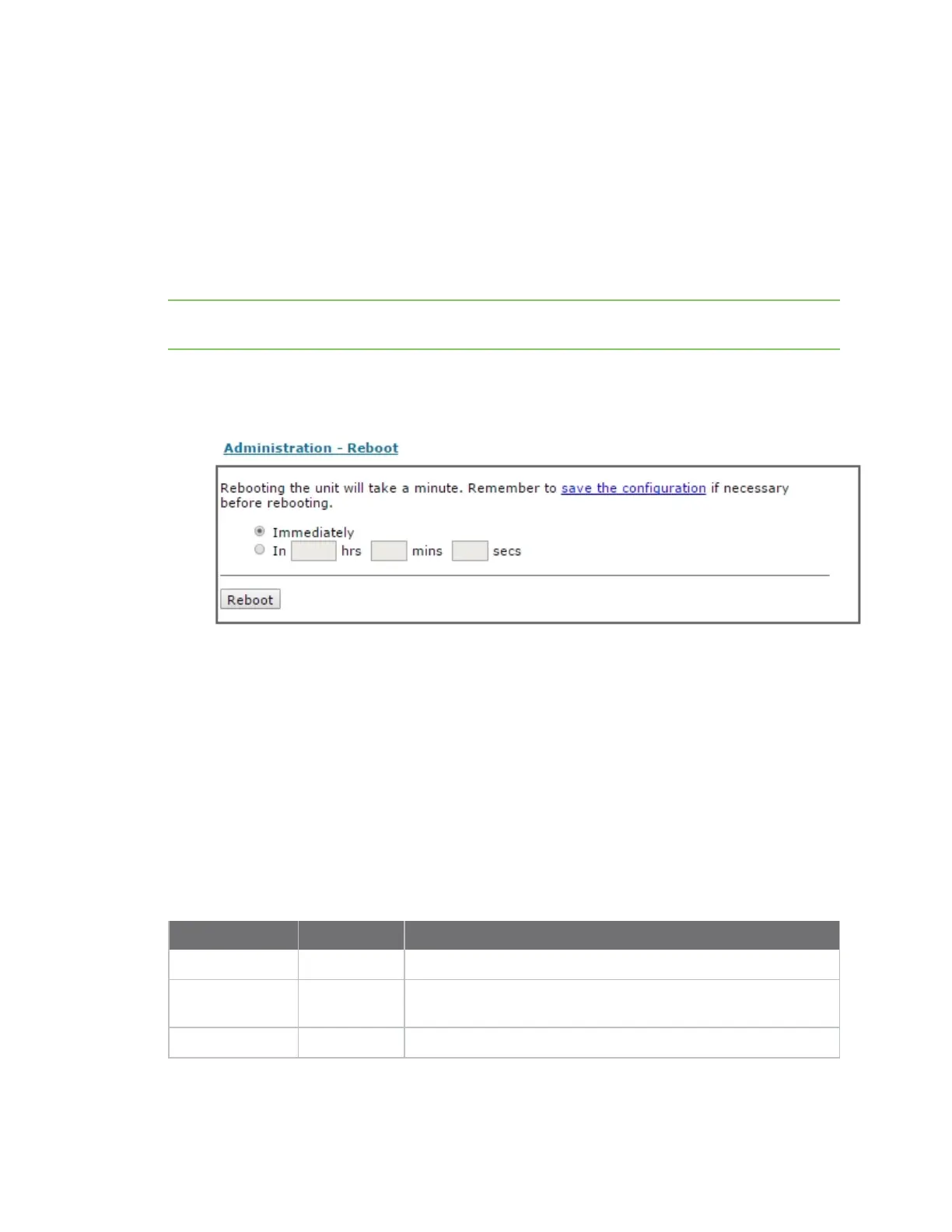 Note To schedule reboots on a recurring basis, use Digi Remote Manager's device tasks feature and