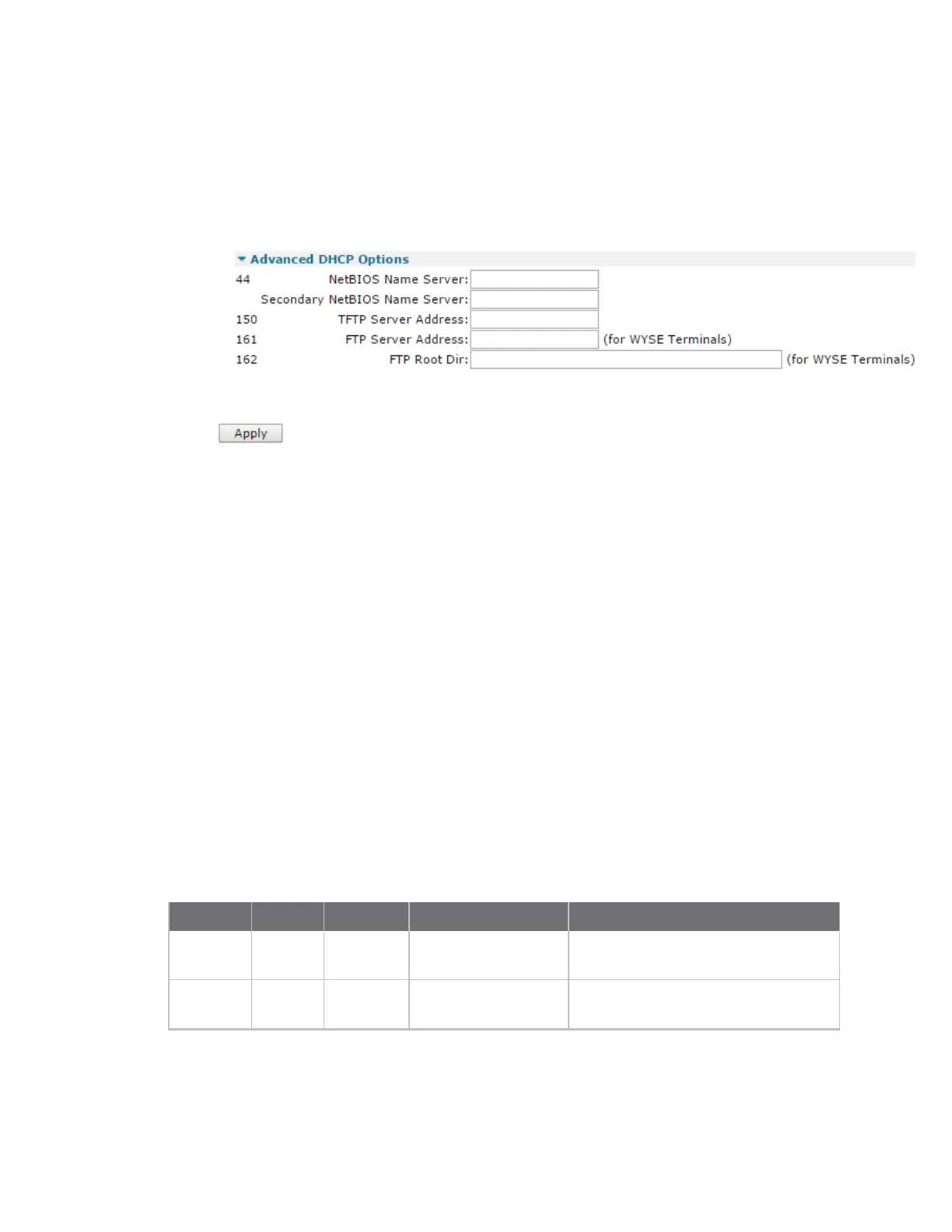 1. Go to Configuration > Network > DHCP Server >DHCPServer for Ethernet n > Advanced