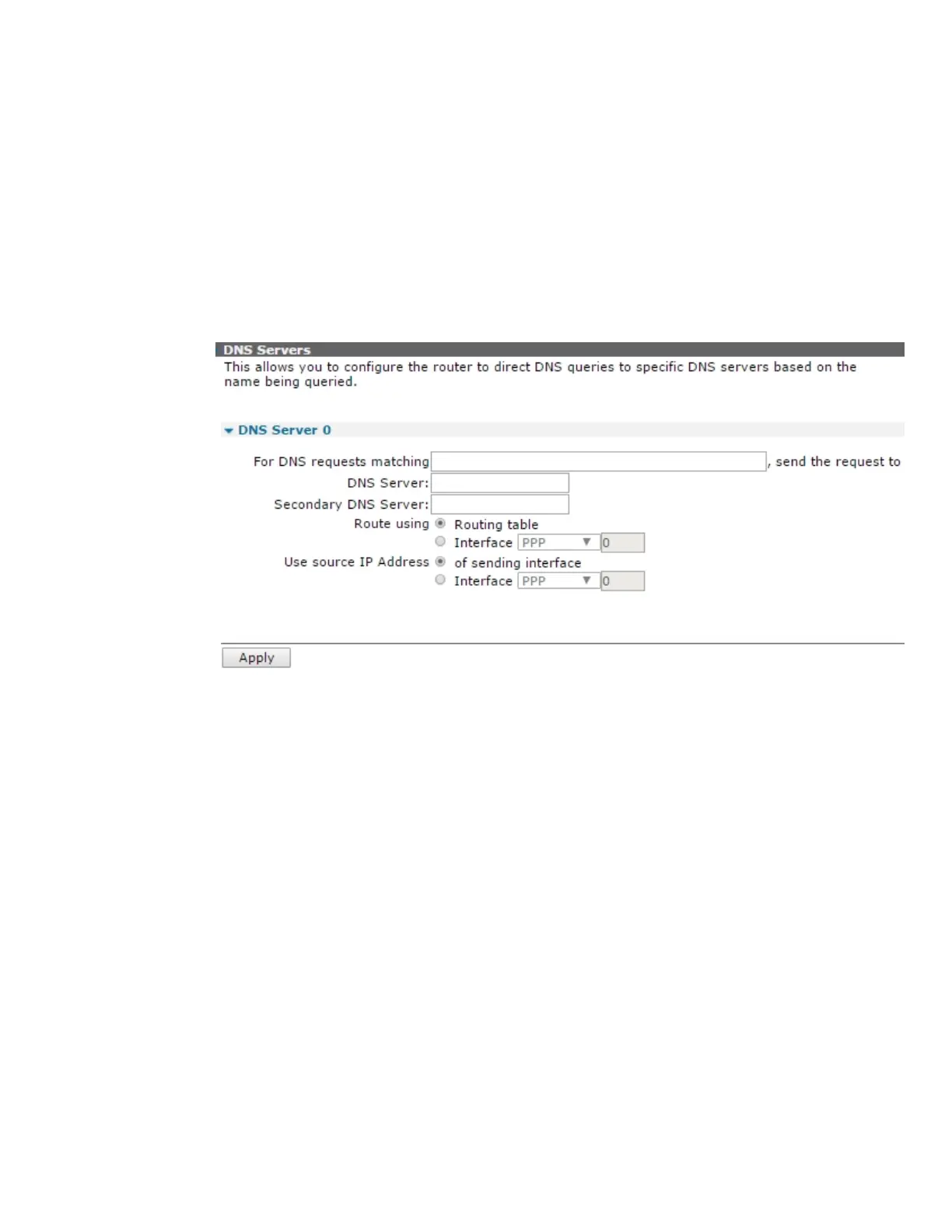 other DNS requests directly to an external DNS server managed by you Internet service provider.