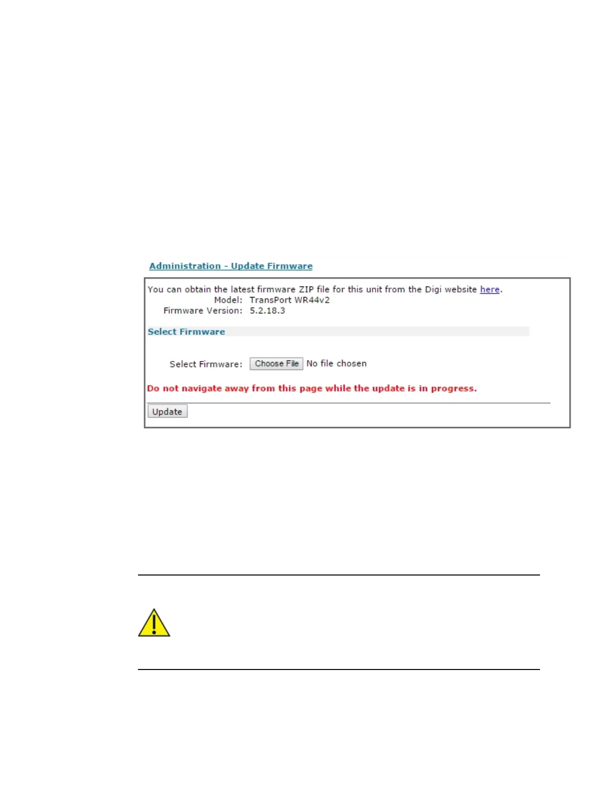 Do not navigate away from the Update Firmware page while an update is in progress,