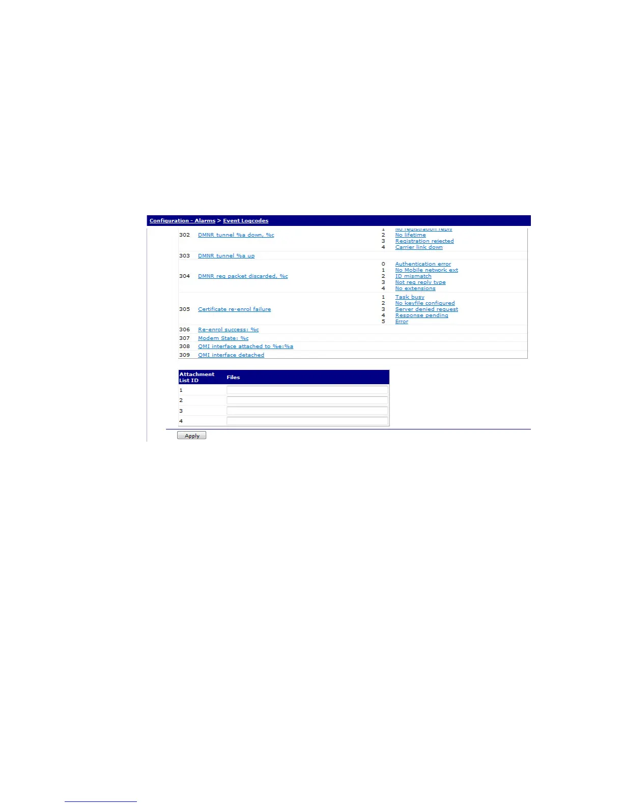 A description of the event code. Clicking on a link in this field brings up the configuration page