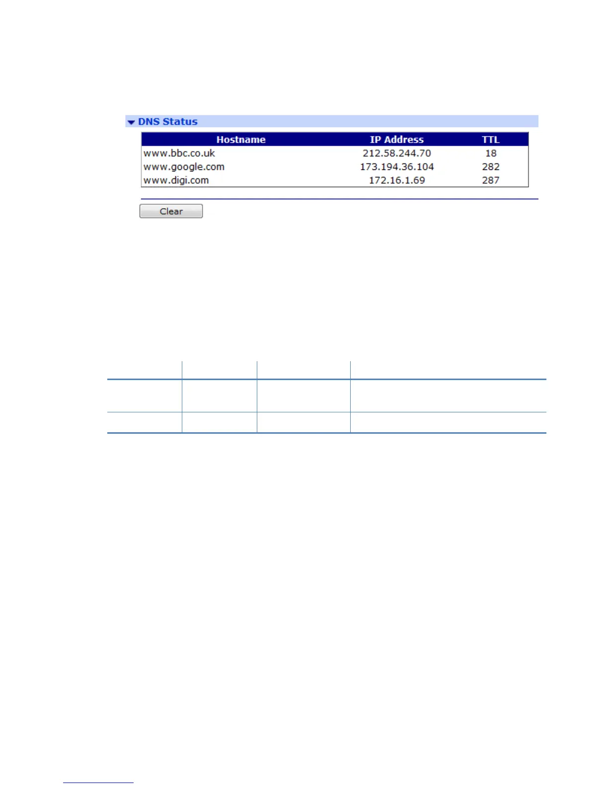 dns 0 clear Deletes all the entries in the DNS table.