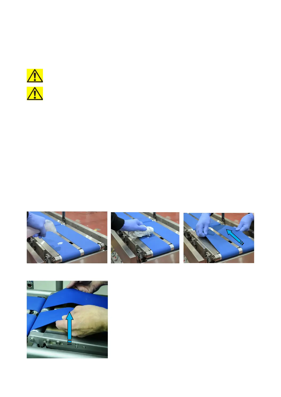 When top surface has been cleaned, carefully push the conveyor belt to rotate it for cleaning the remainder