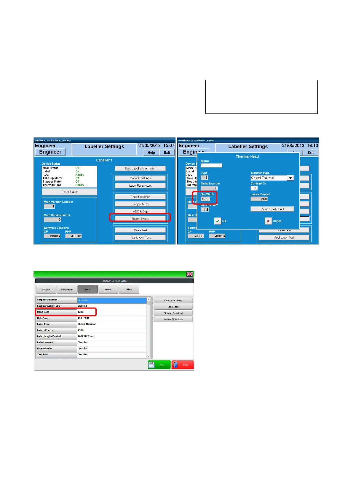 If the thermal head size on the labeller is to be changed, a setting in the Console or Worldview software