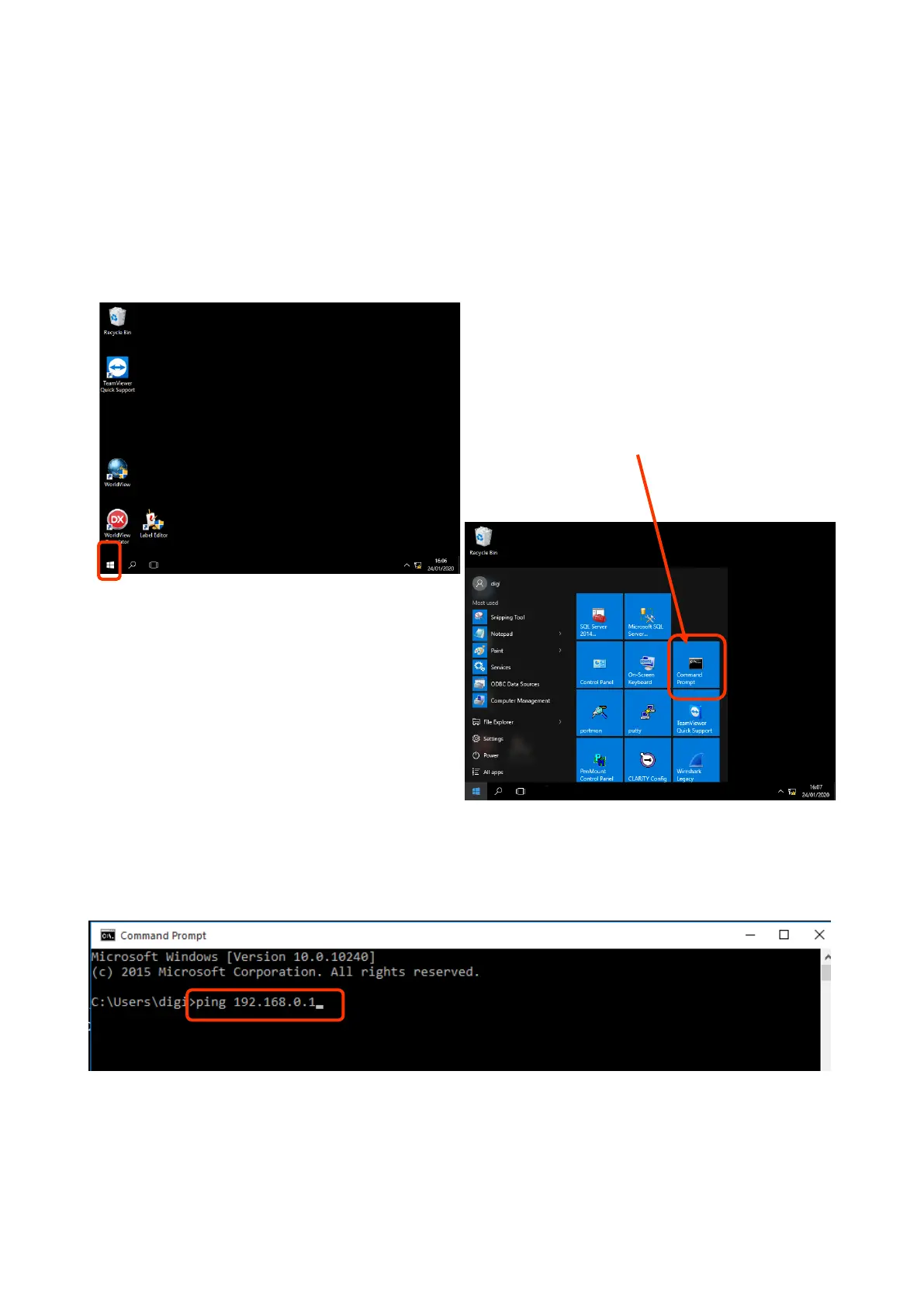 To access the command prompt function the machine needs to be at Windows® level or access the