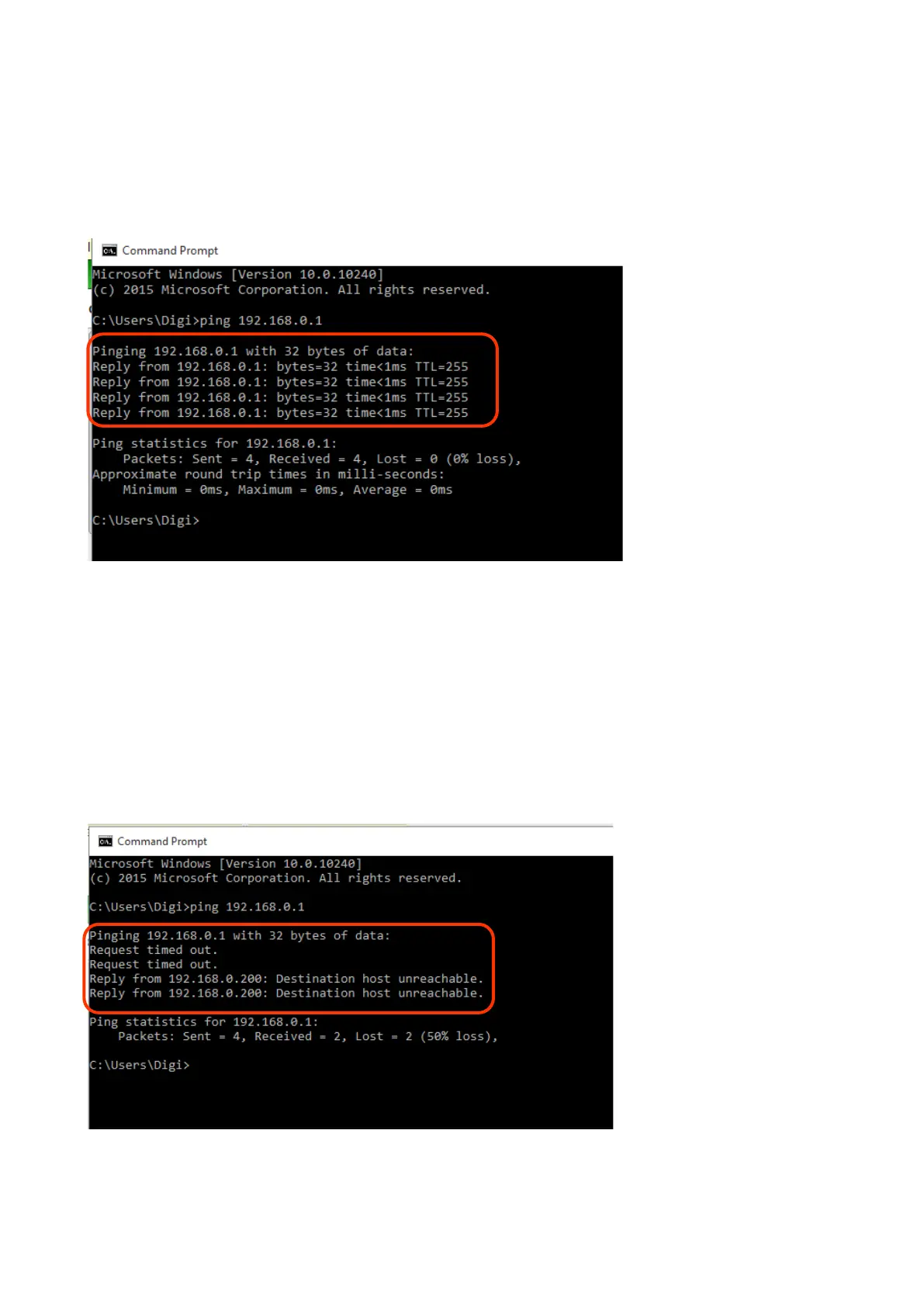 On the screen below the communication has failed (timed out and / or Destination host unreachable
