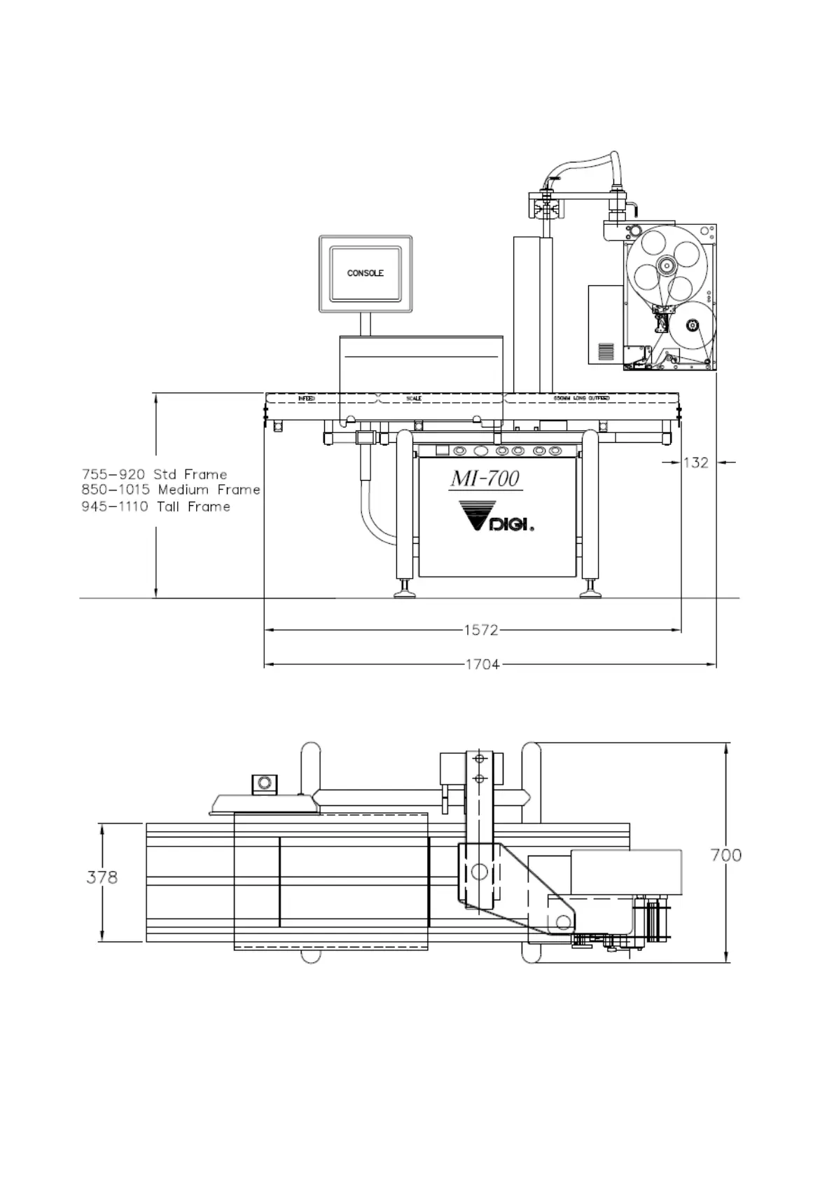 MI-700 dimensions