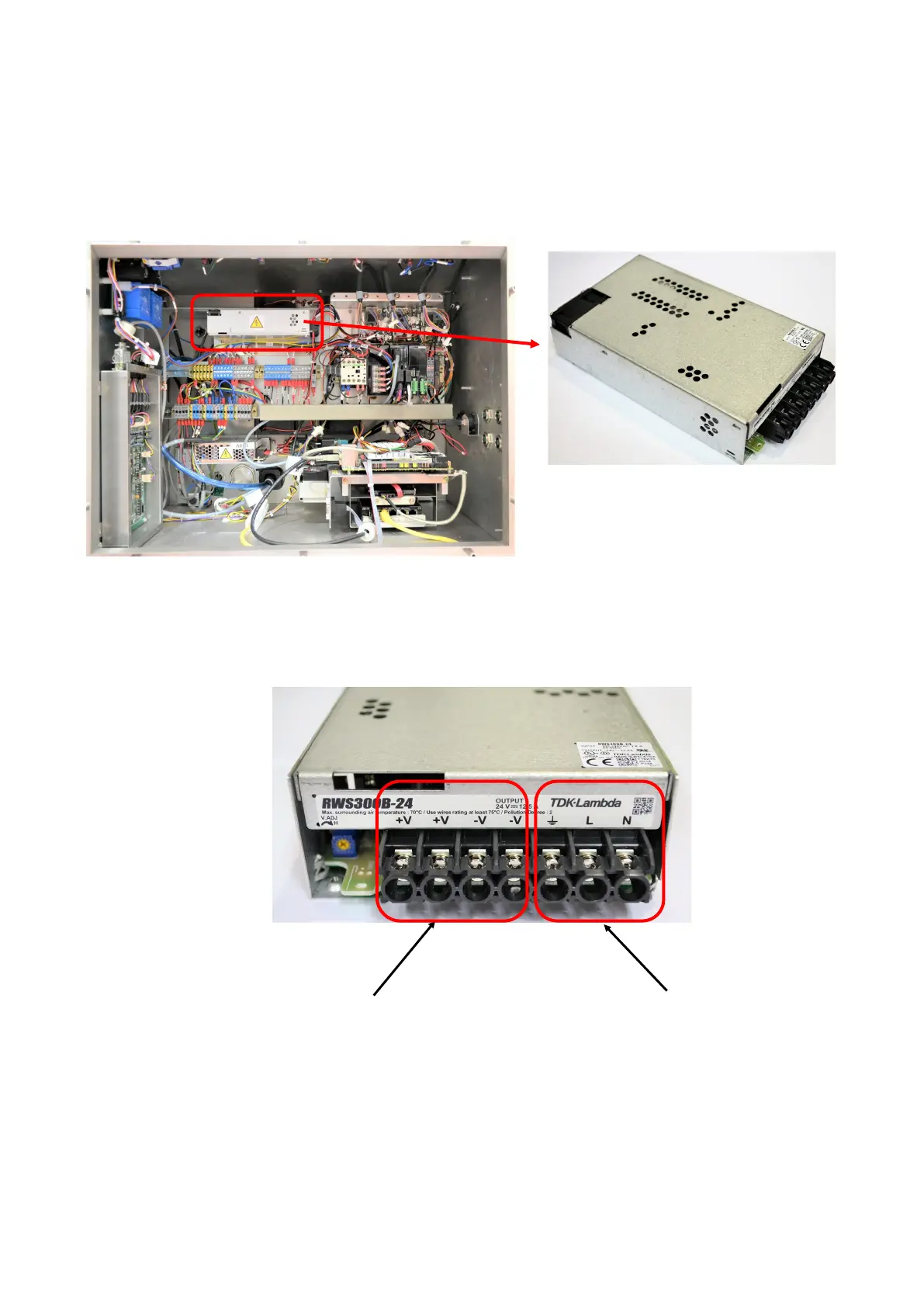 This 24v PSU supplies 24v to the contactor / conveyor stop – start circuit and the four cooling fans within