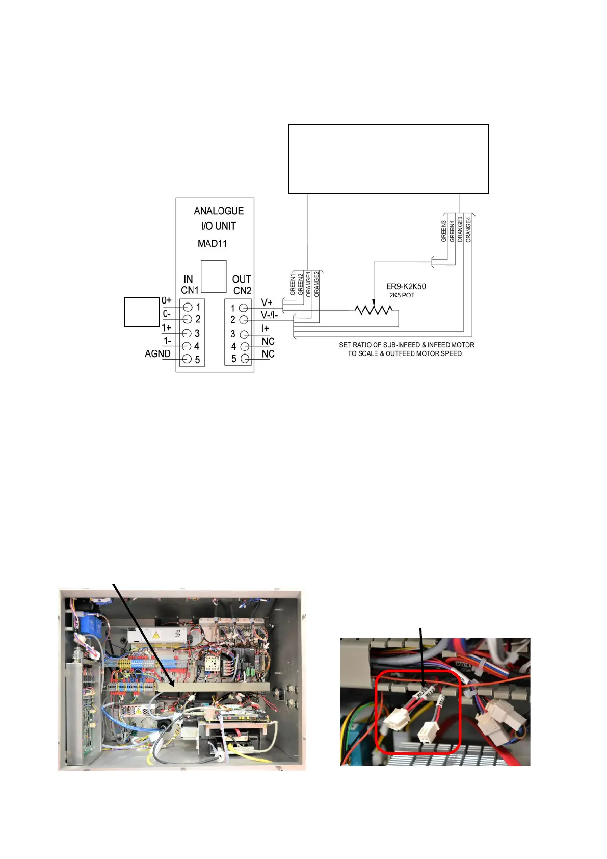 The final speed of the conveyors is controlled by the output voltage from CN2; therefore this voltage is