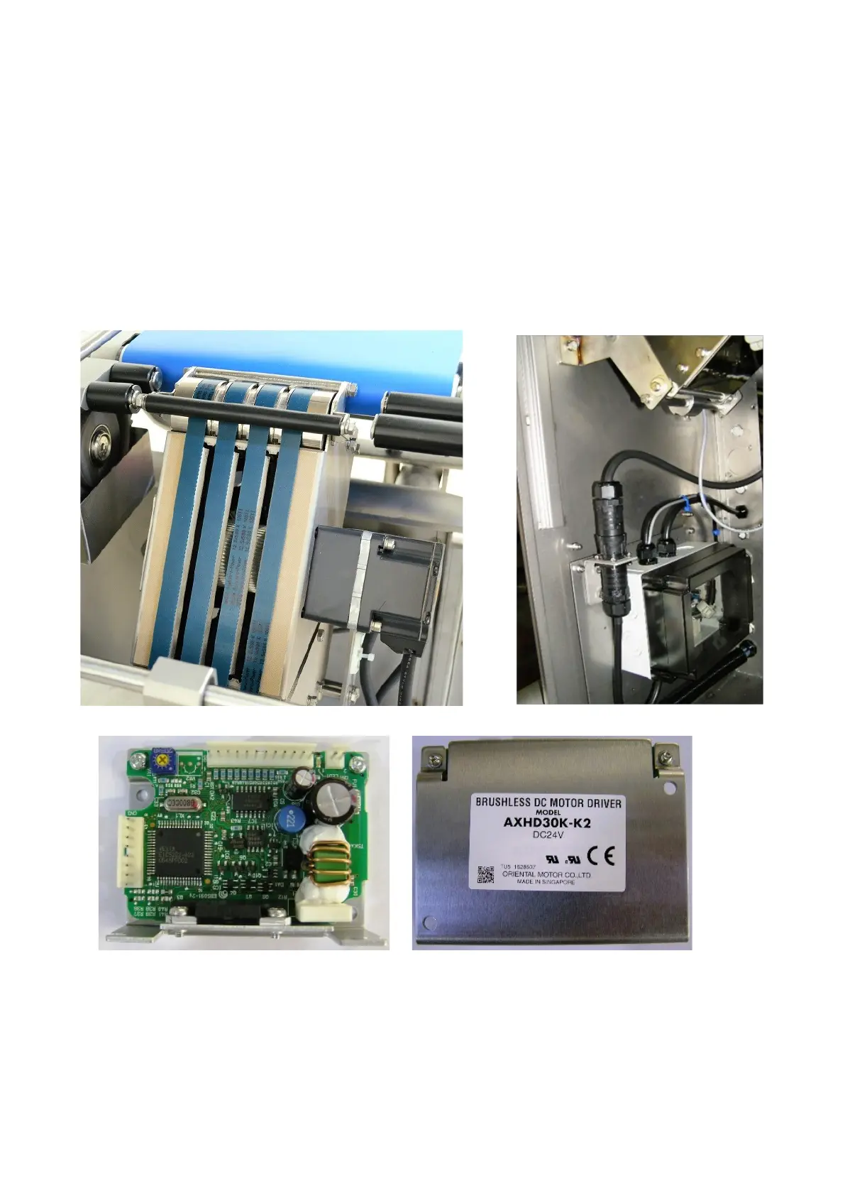 An electrical box in base labeller cabinet holds the motor driver for the belt applicator and the outfeed