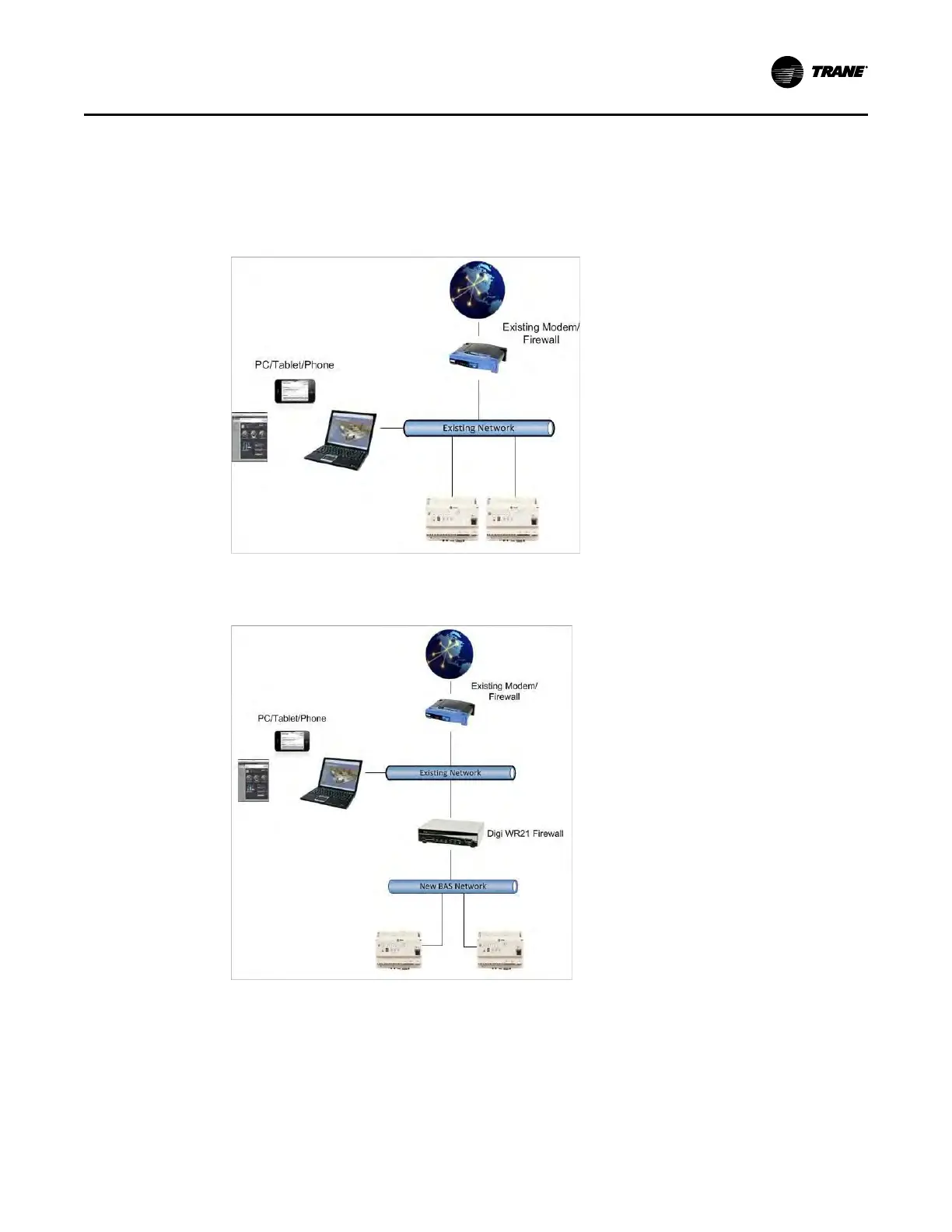 network equipment and a Tracer BAS controller. The two figures below show the network before