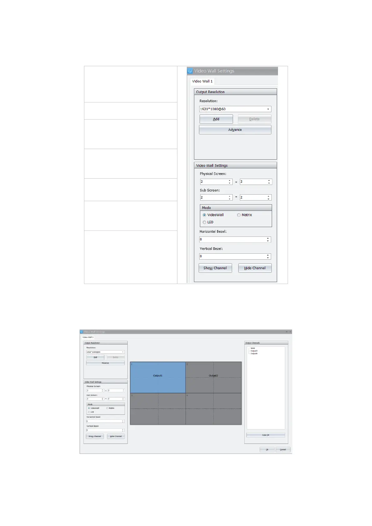 When configure video wall, output channel will automatically map to connected screen from left