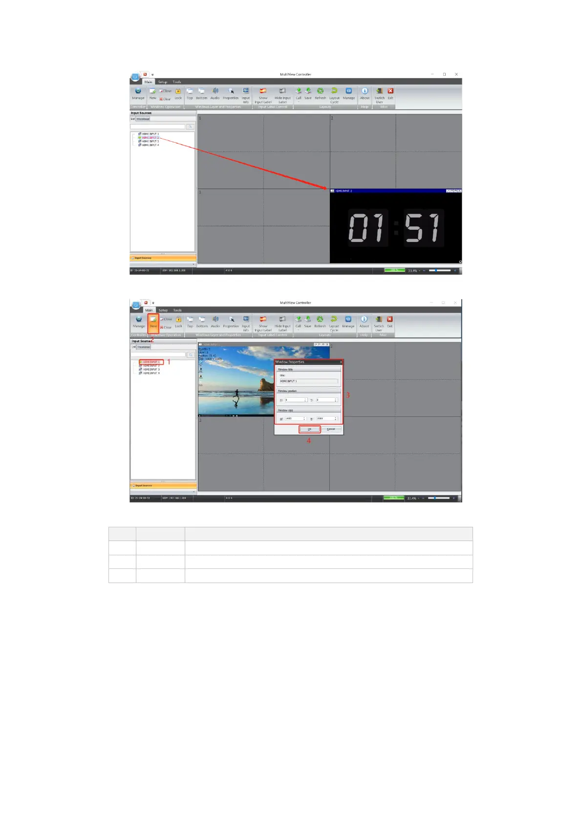 1. Select one window at virtual video wall, double click target signal from inputs list to