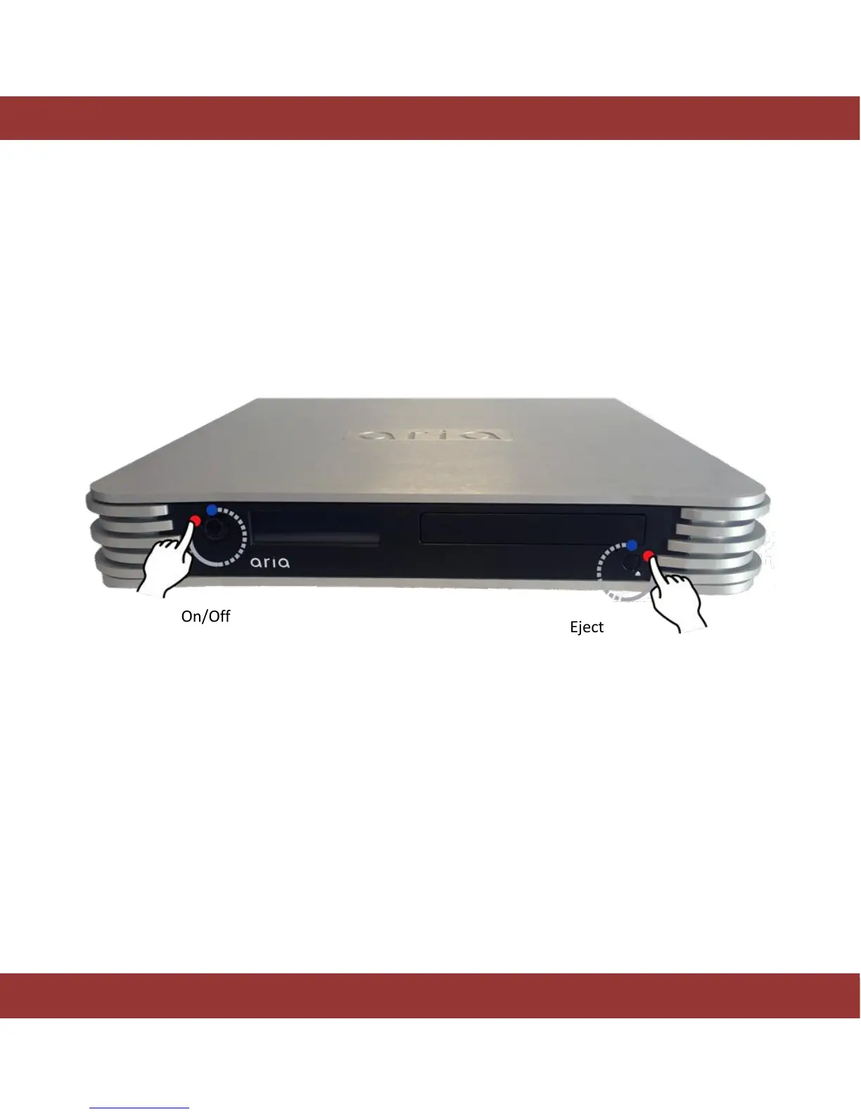 Once the system is correctly connected, turn on the aria by pushing the power switch on the back to the
