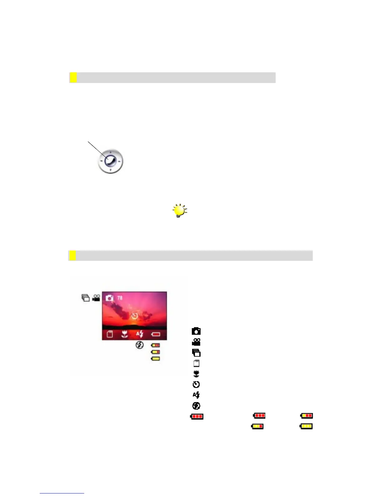 The Camera Mode is for taking photos and short movies. In this mode, the direction button has