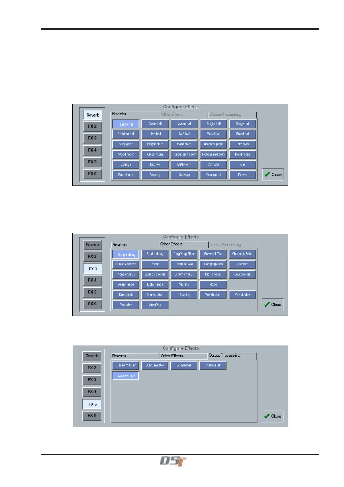 Touching the Configure Effects button in the Setup menu on the Master Screen opens the following panel: