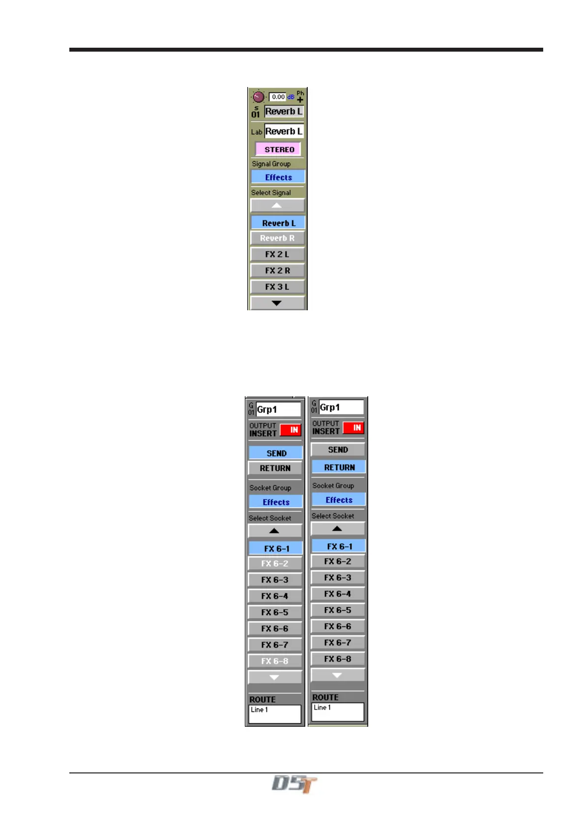 Touch the Send button and select the input to the required effects module, then touch the Return button and select the output from the