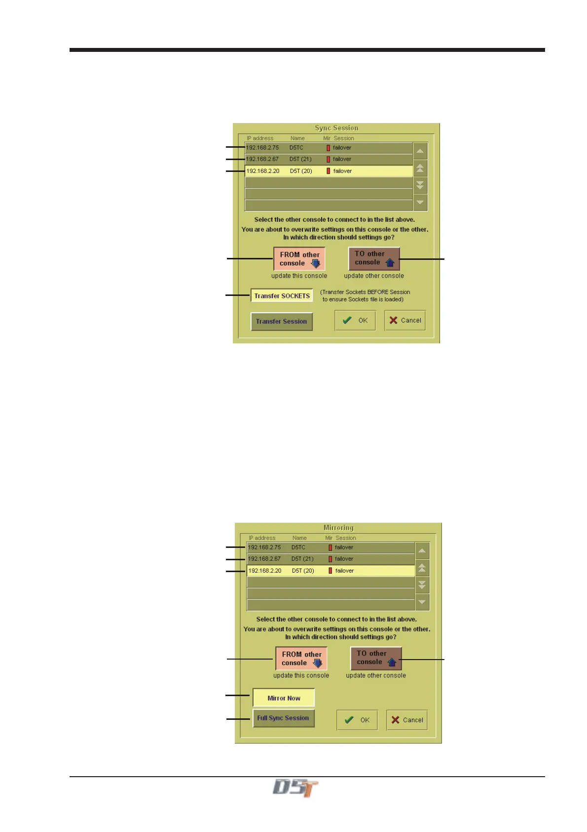 Working on the TC (used to remote control and mirror the main console), press the Sync Session button and this panel will open: