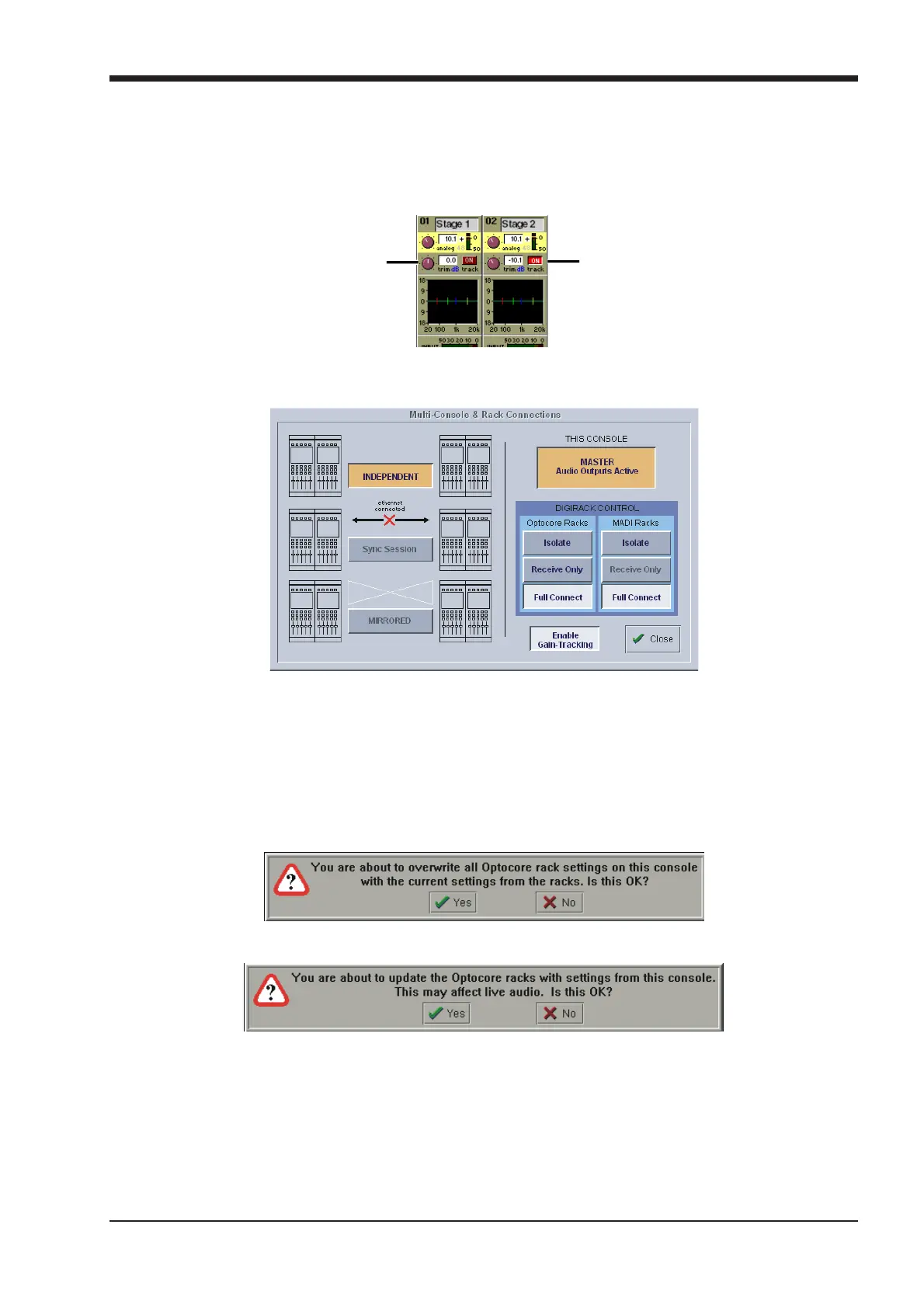 In this state, any gain adjustments made on the console will have no effect as the racks will not be receiving any data.