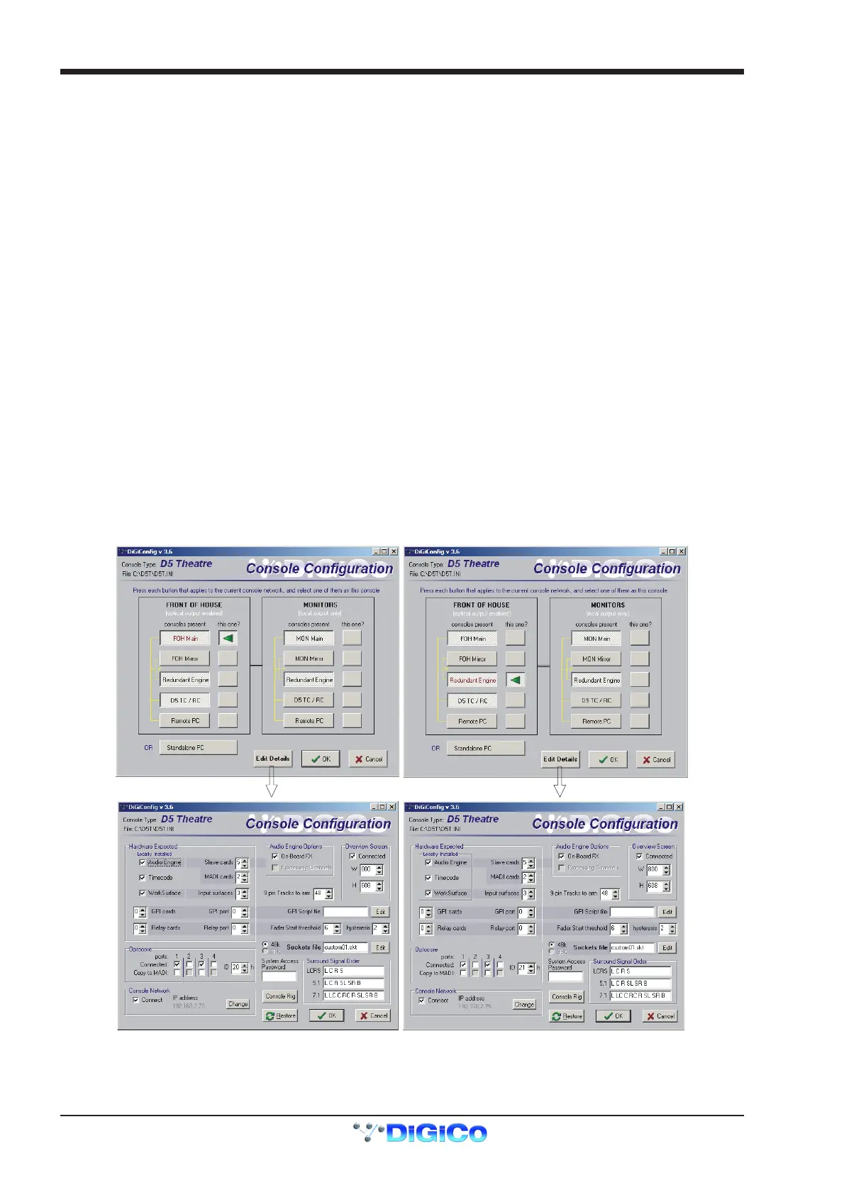 The example below shows the settings for a system with a Main Front of House console and its Redundant Engine, a Monitor console and