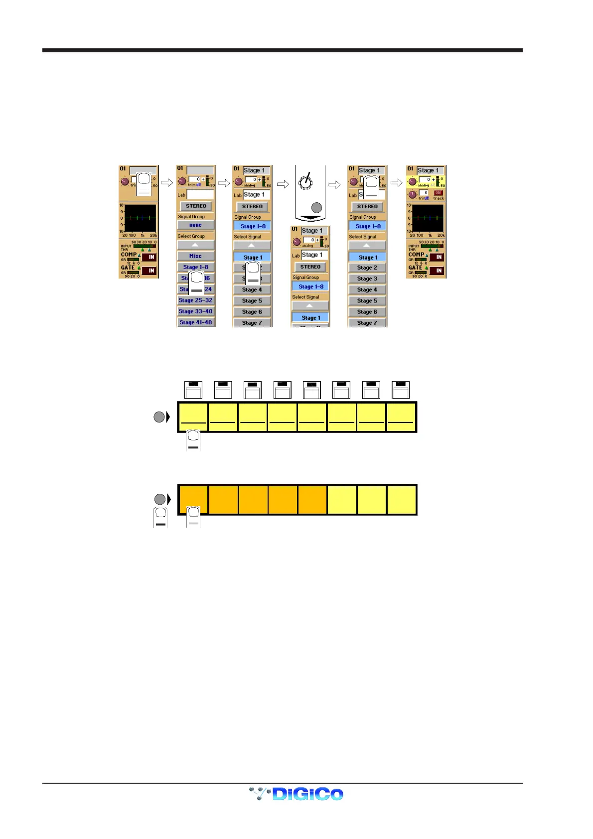 Input sources are divided into groups of signals eg. Stage 1-8 or Line 1-16.