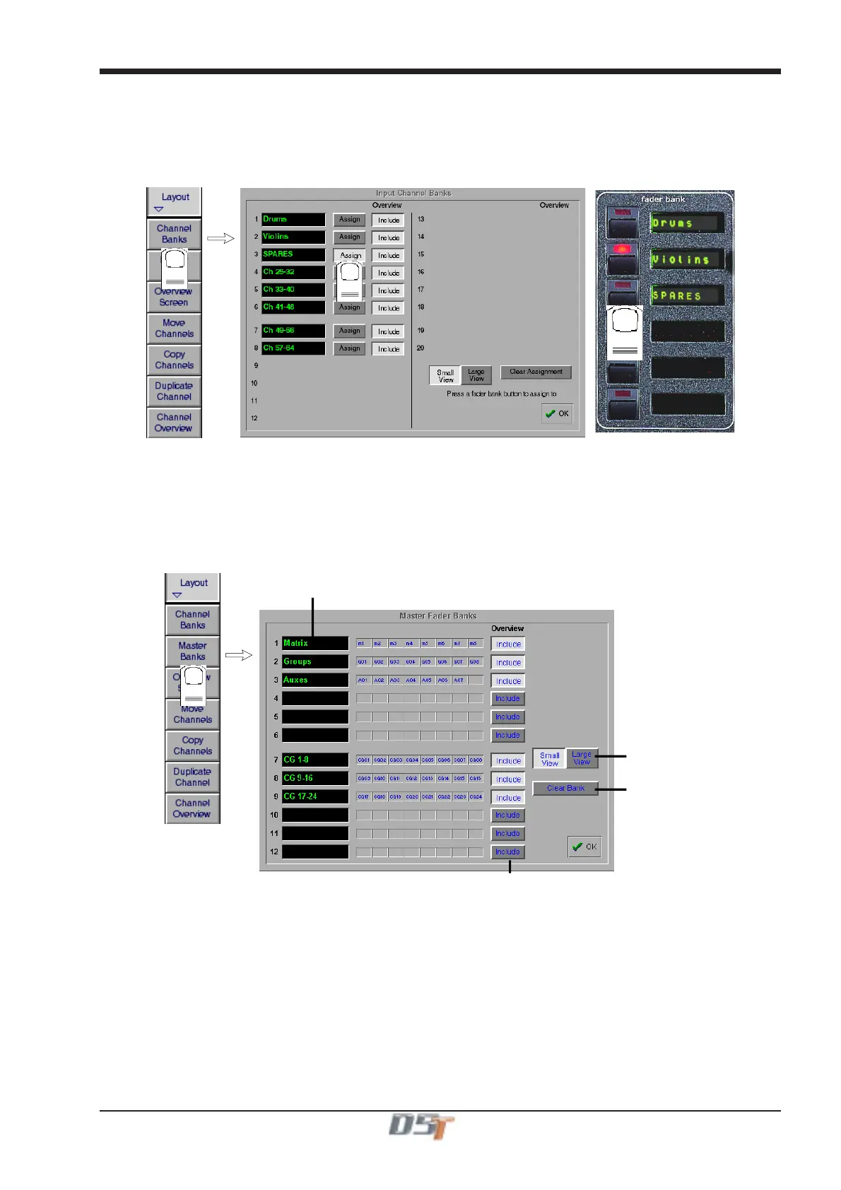 To assign a Channel bank to one of the console worksurface Fader Banks: