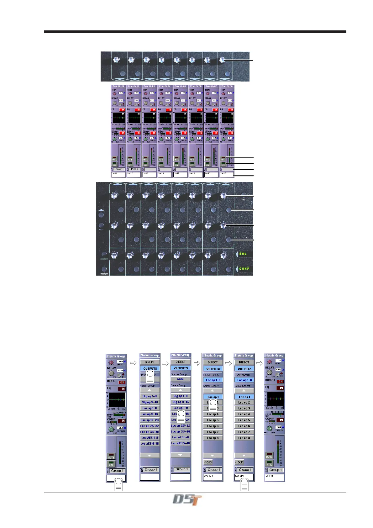 Matrix Group signals may be routed to a pre EQ, pre fader direct output and/or a post fader output