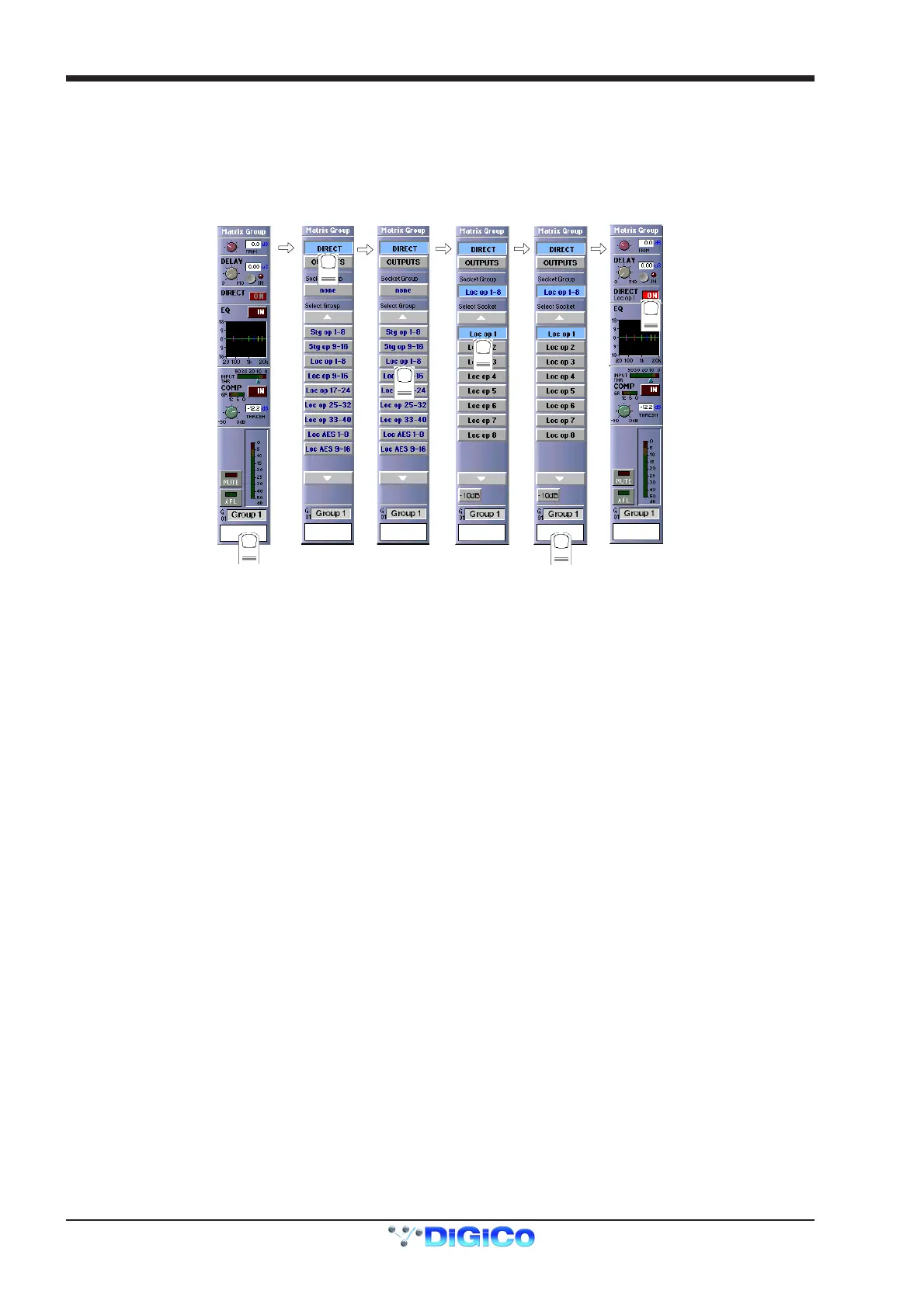 To Route a Matrix Group to a pre EQ, pre fader Direct Output: