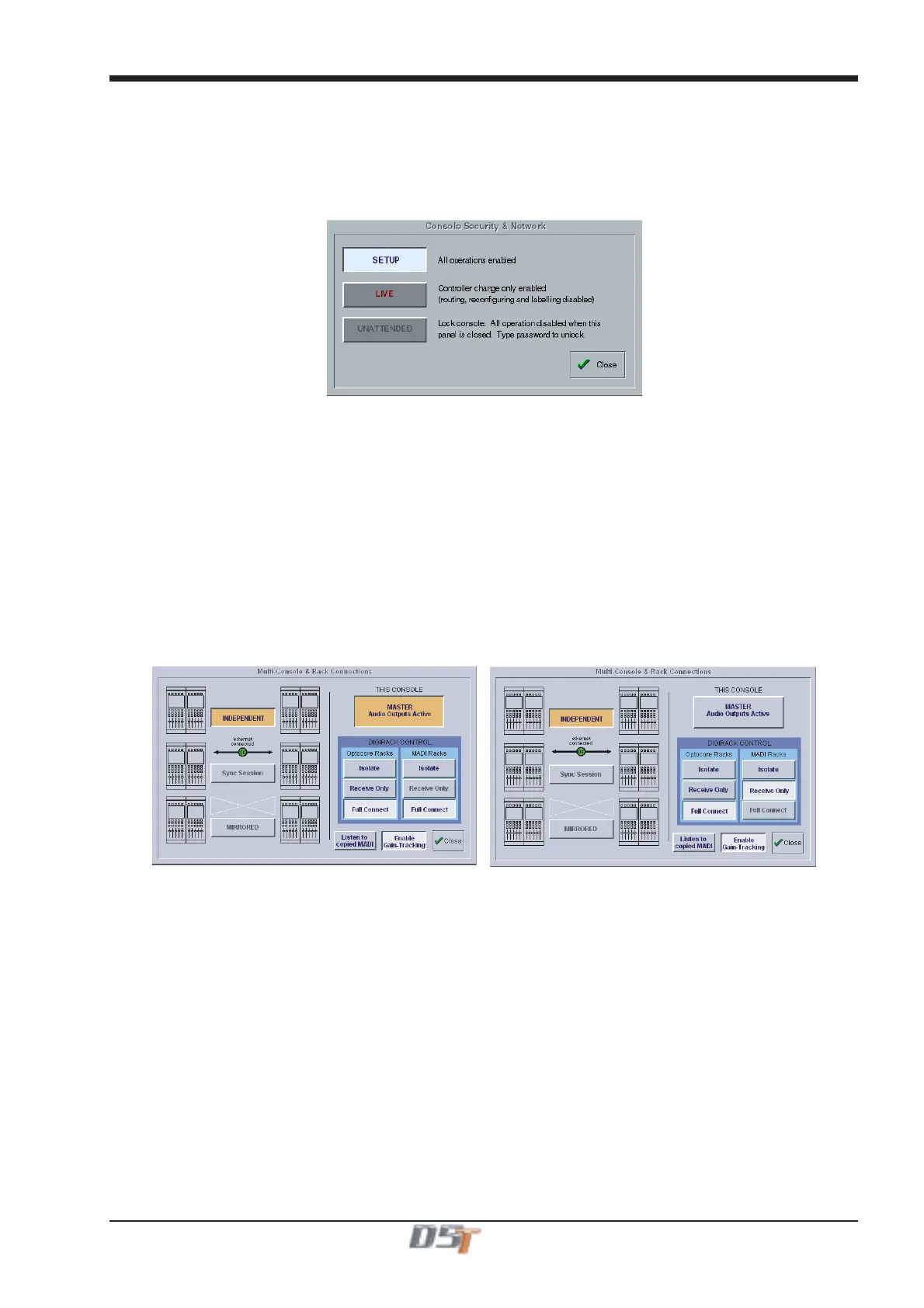 If you have a system where more than one console is sharing the racks you may wish to use the Receive Only mode where the console