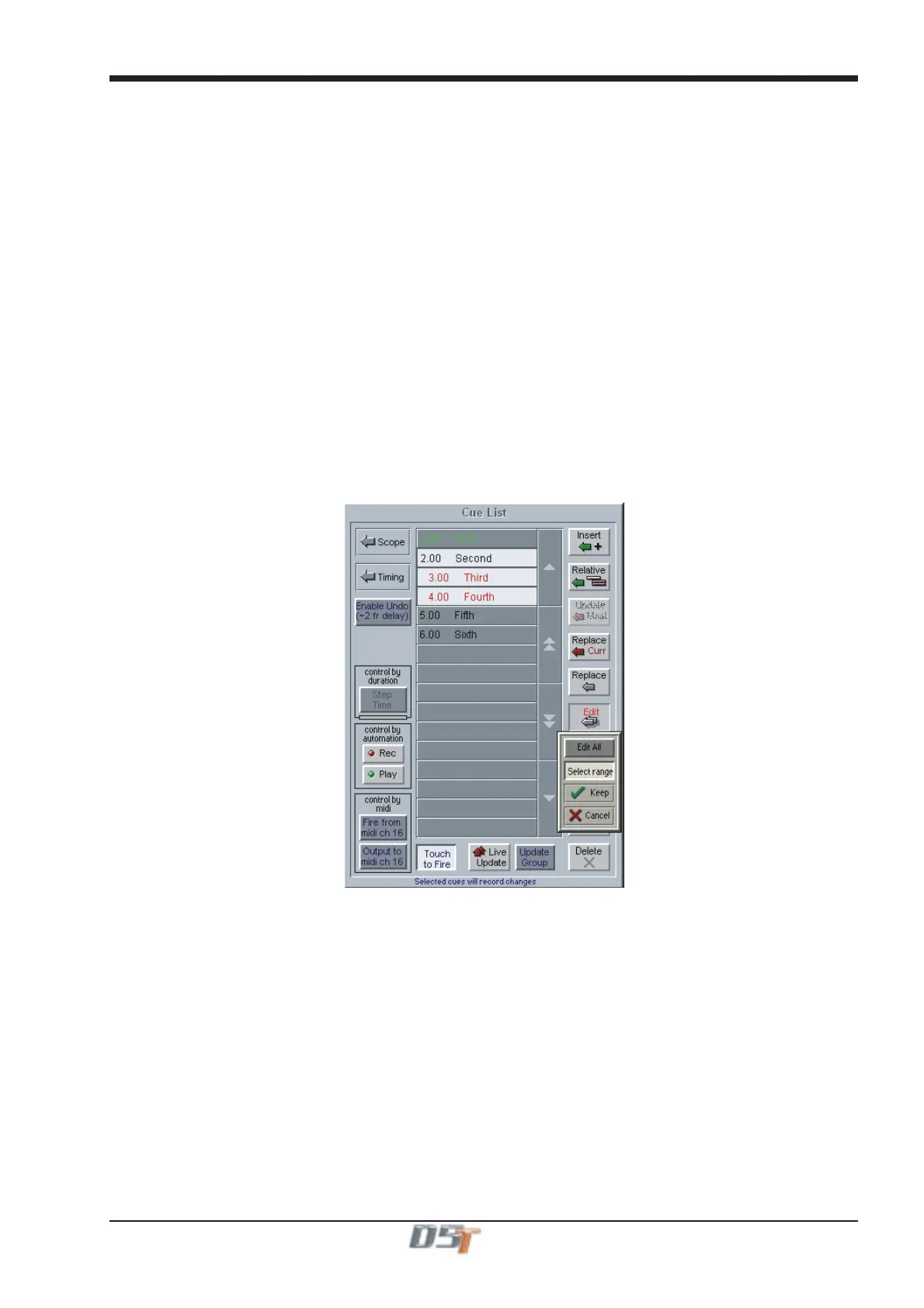 If Cancel is pressed instead of Keep, all cues changed since the Edit button was pressed are returned to their original states, irrespective