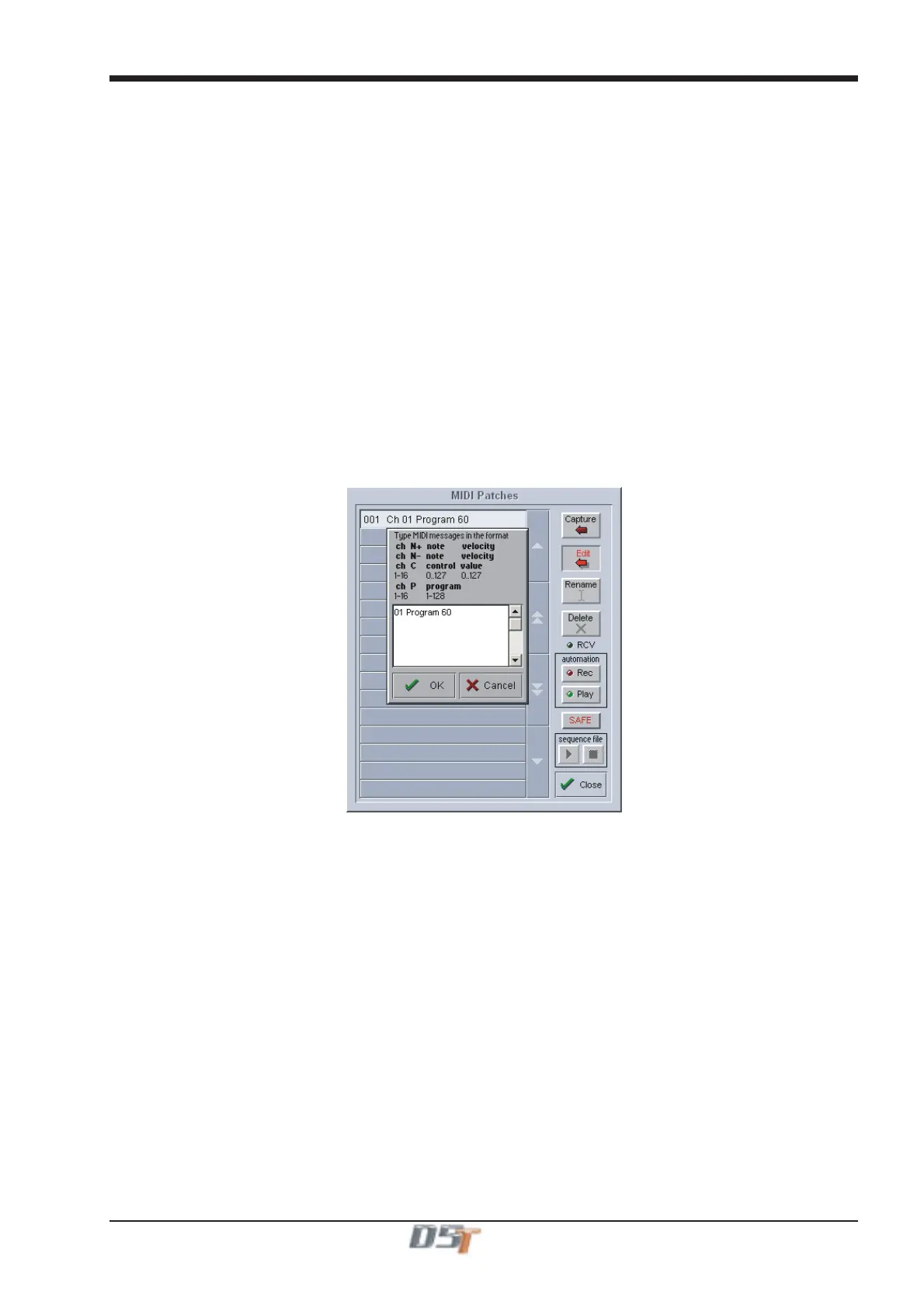 When the Capture button is pressed a text panel is displayed and any incoming MIDI controller or program change information is
