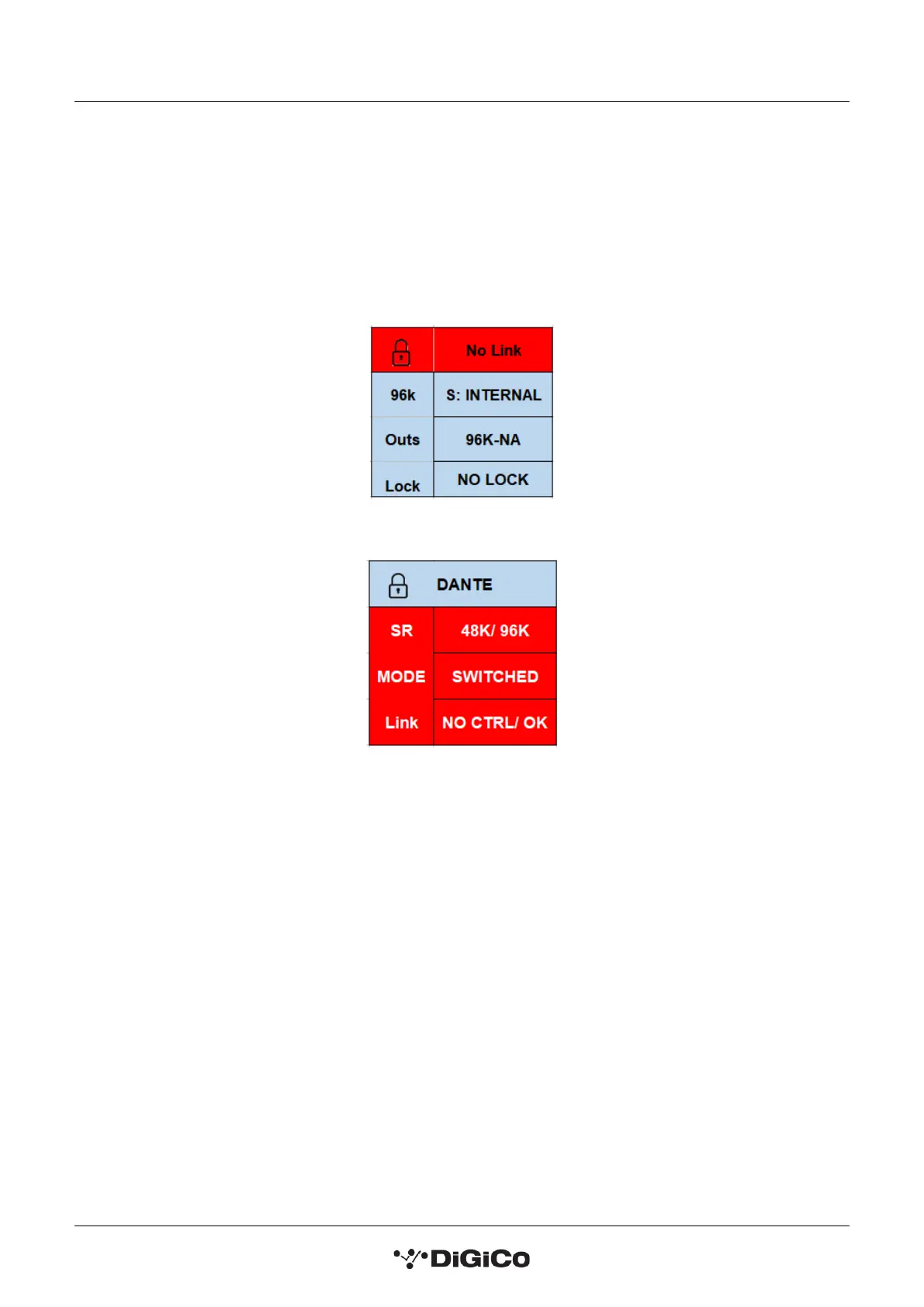 blue with a band of red on the MQ-Rack and flashing red on the DQ-Rack.
