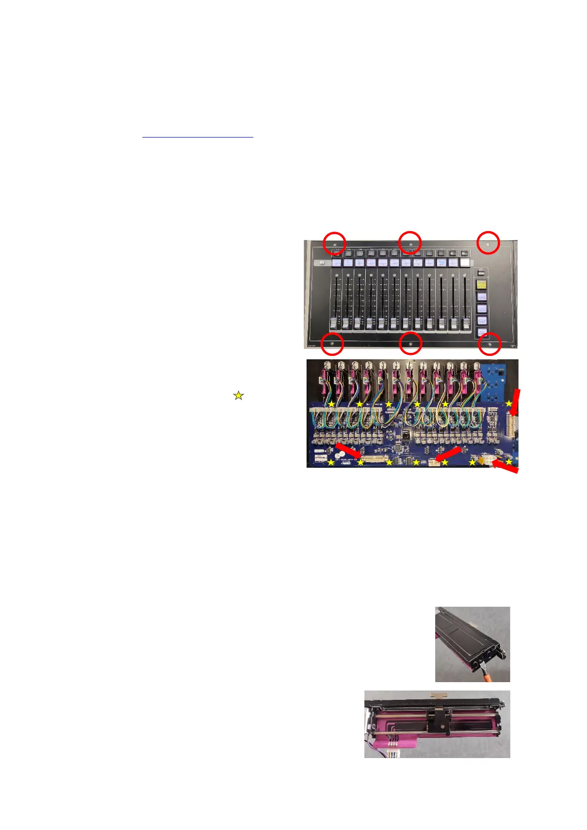 re-plug the connectors to the PCB’s. Place the fader panel back into the console, switch the console