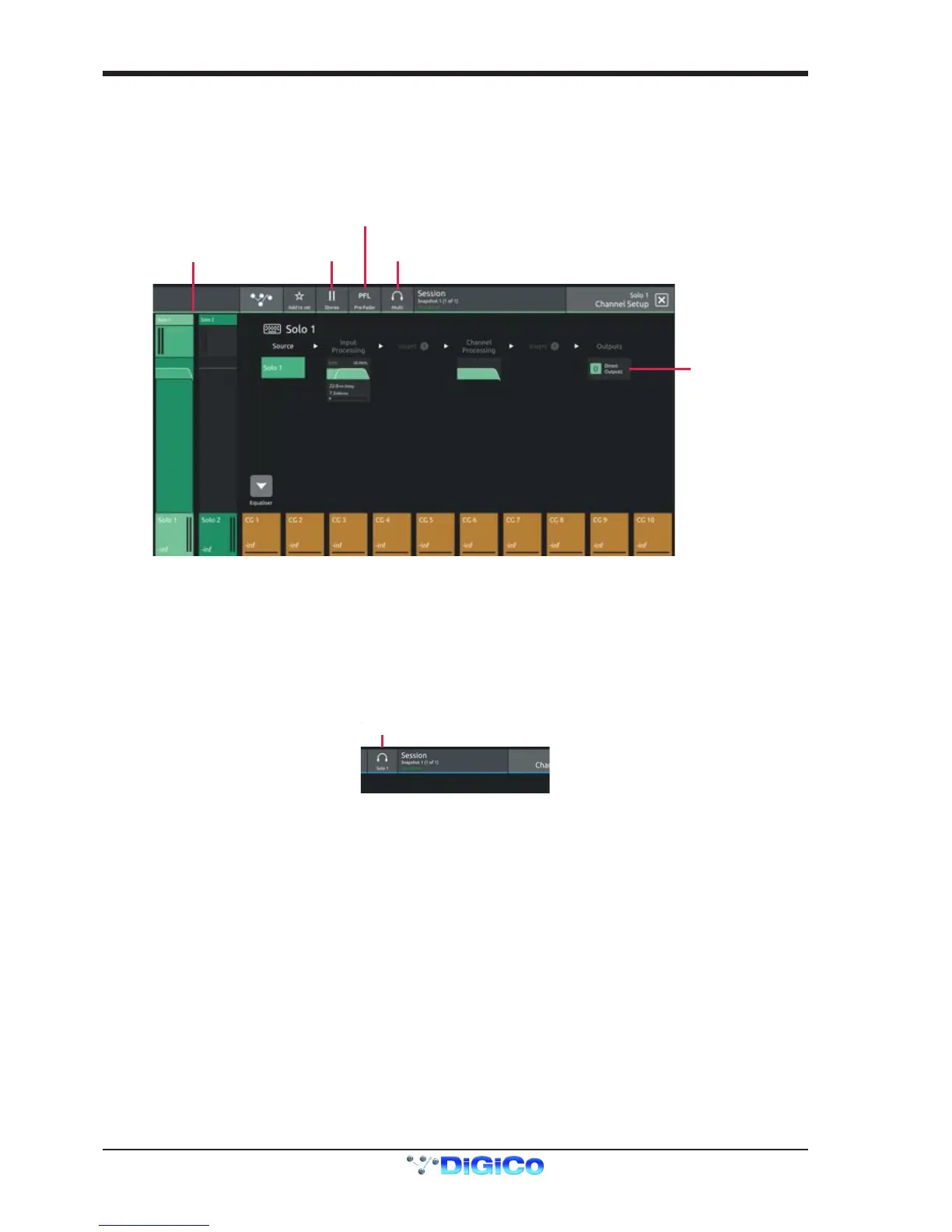Note: Both Solo busses 1&2 are both sent permanently to the console headphone socket.