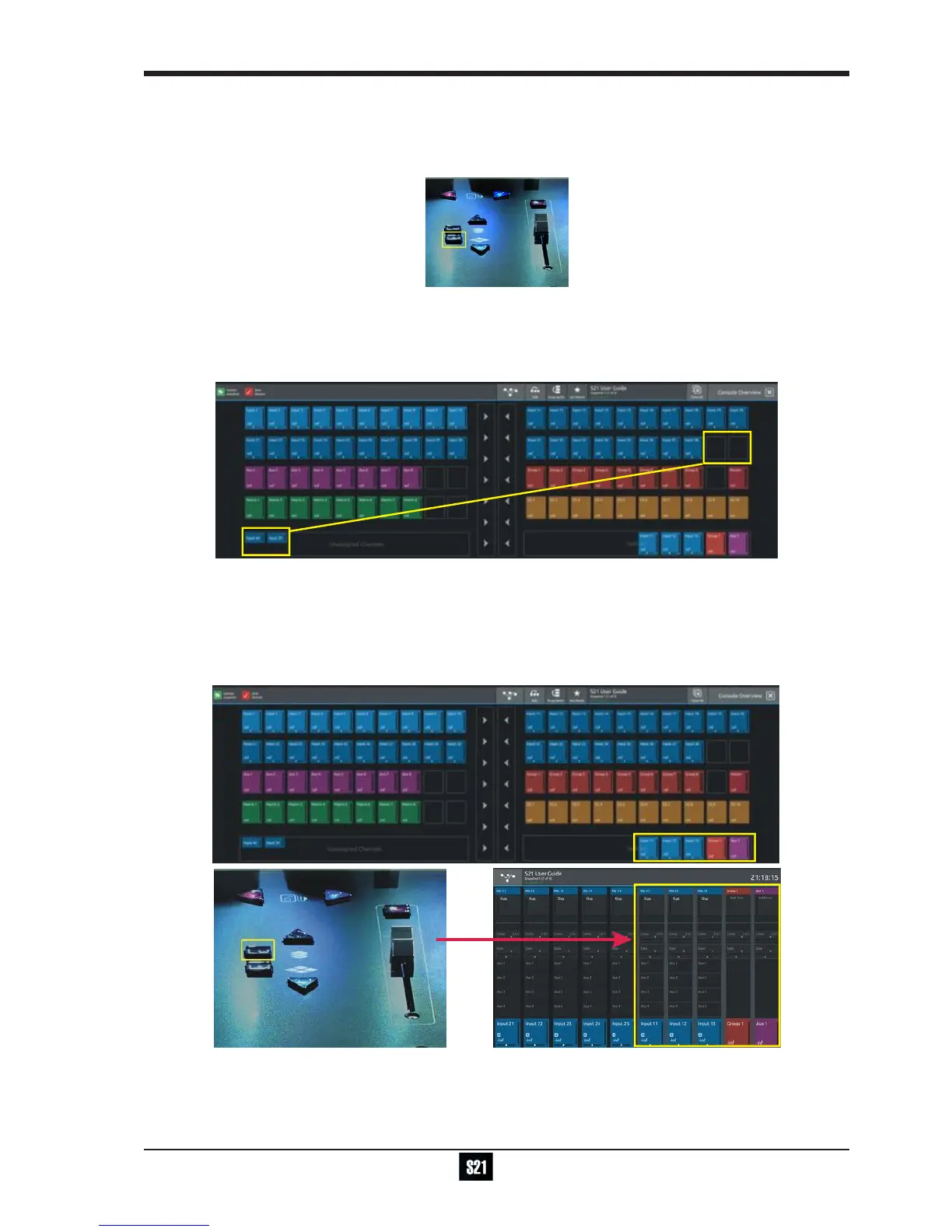 Note: Channel blocks can be dragged between the 2 console screens