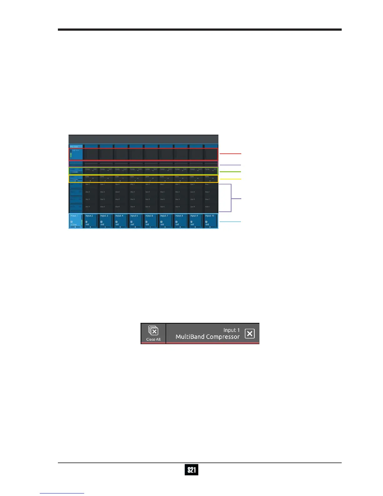 The image above shows the various touch areas in the Channel view and the expanded view will be displayed on the Master screen.