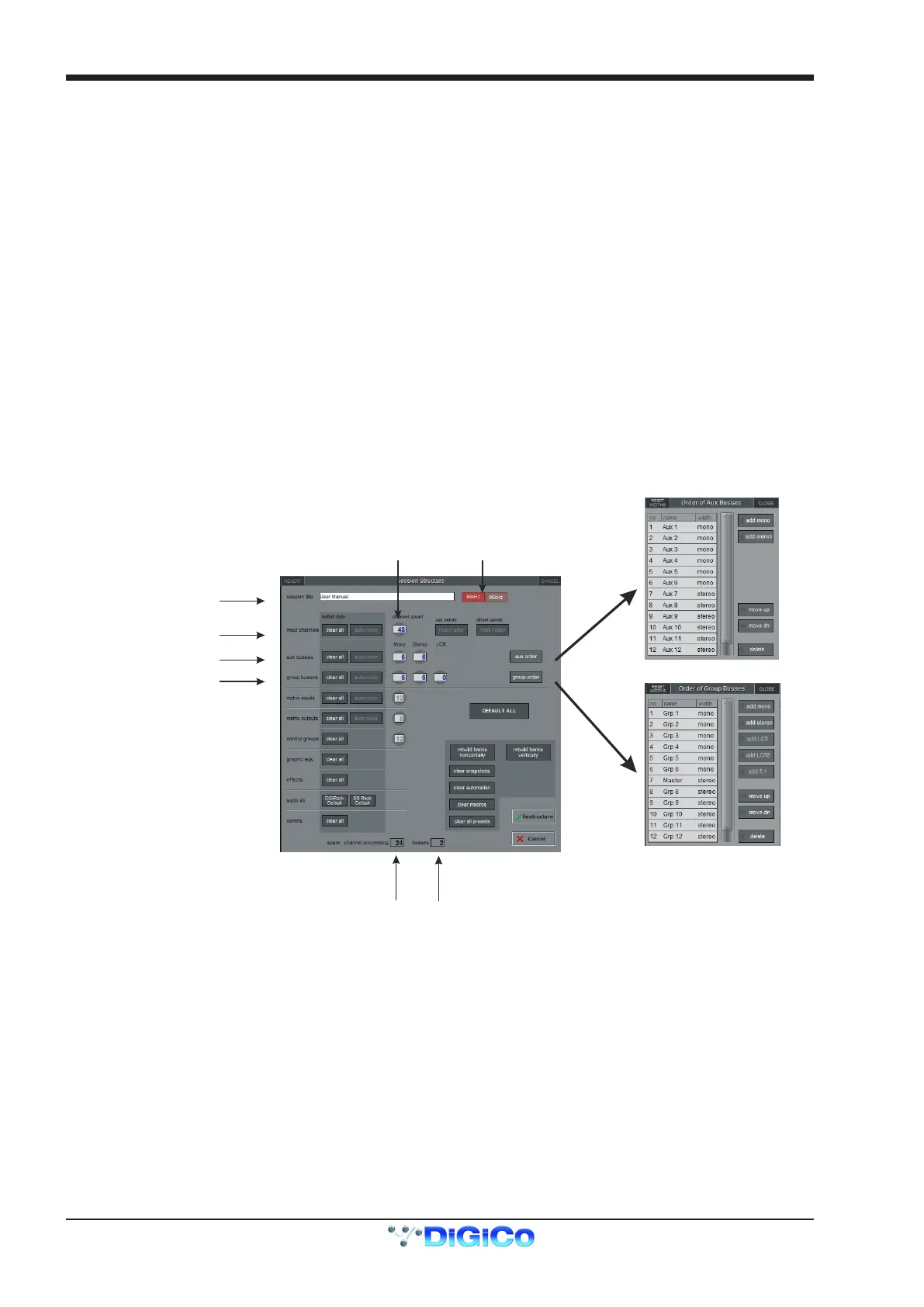 The structure will set items such as the number of input channels, the number and type of aux channels and group channels available