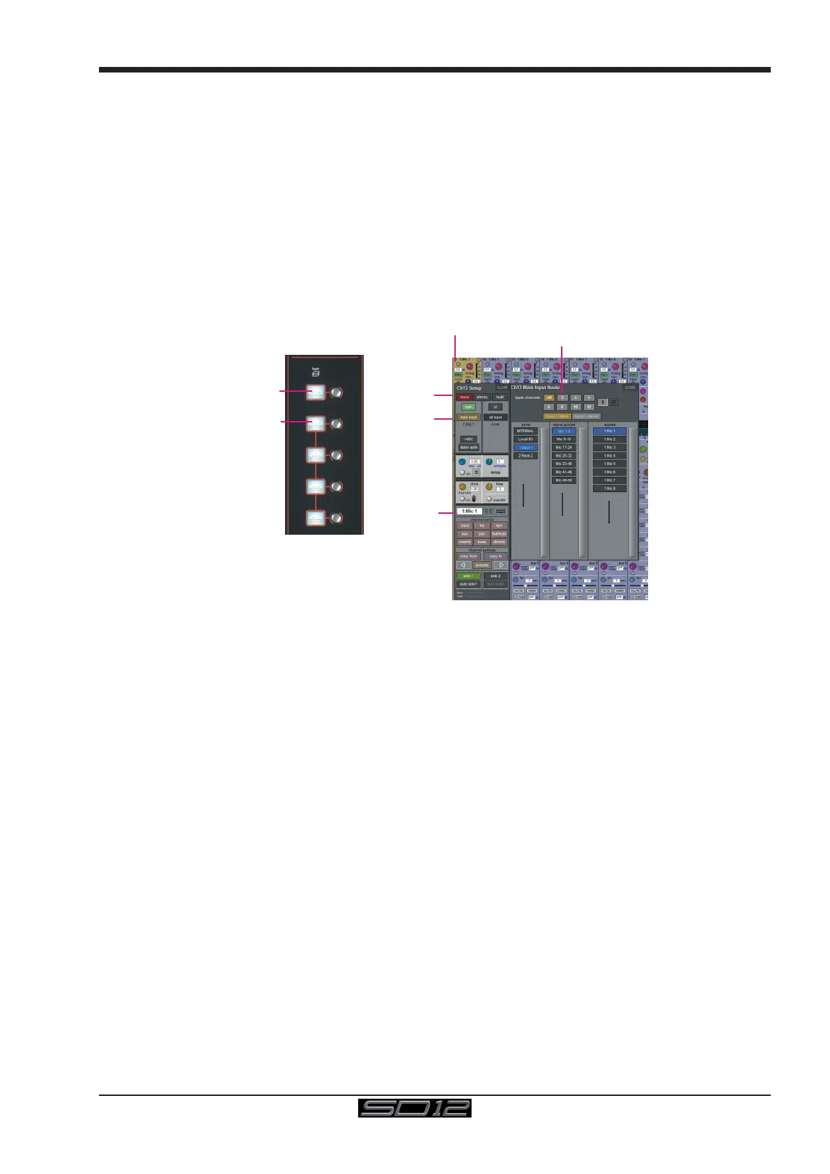 bottom of the display, then touch the input route box for a channel. A standard Setup display will then appear, from which a Routing