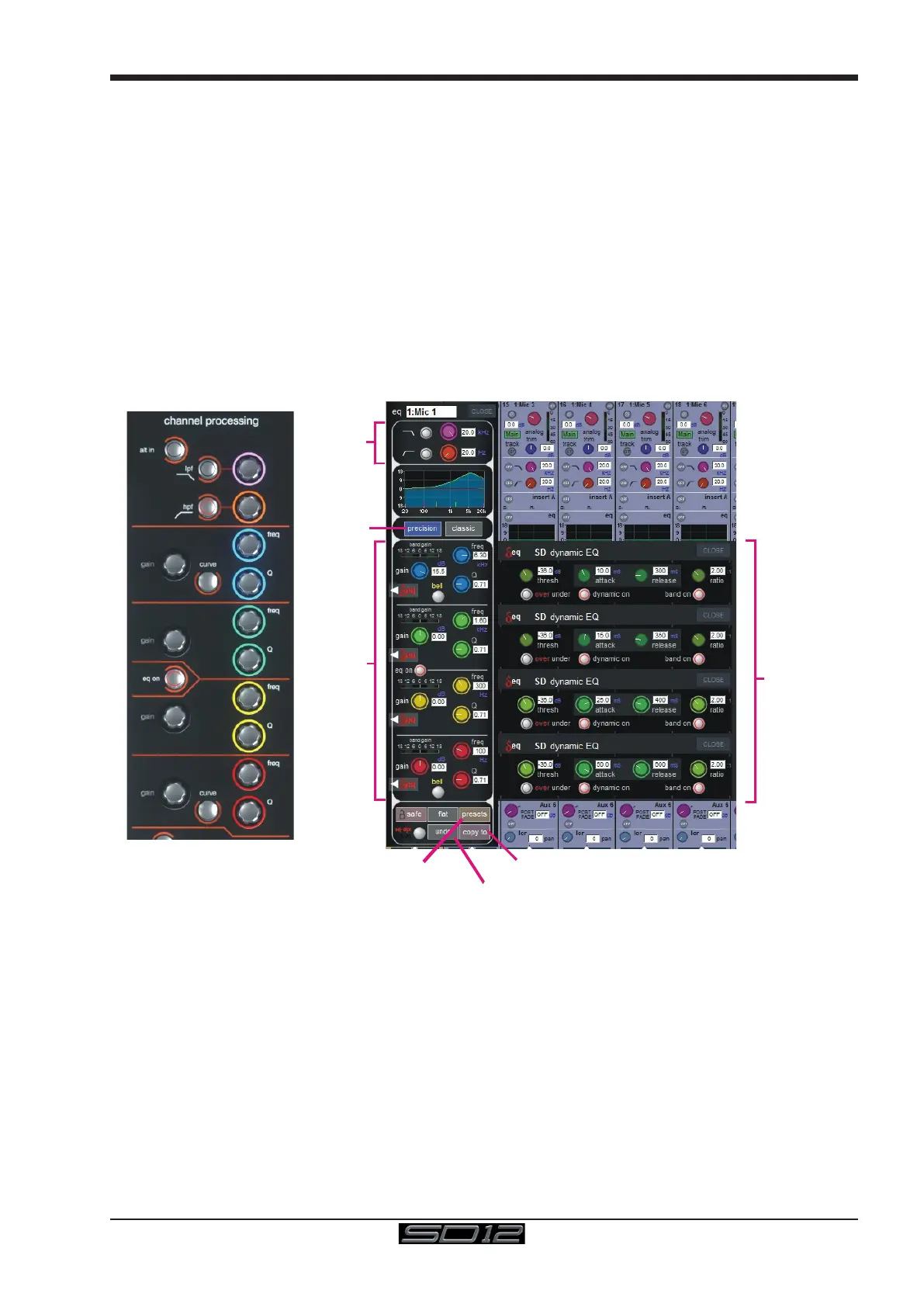 The EQ section comprises four user-congurable parametric lters with Dynamic Control on all Channels and a pair of swept High-pass