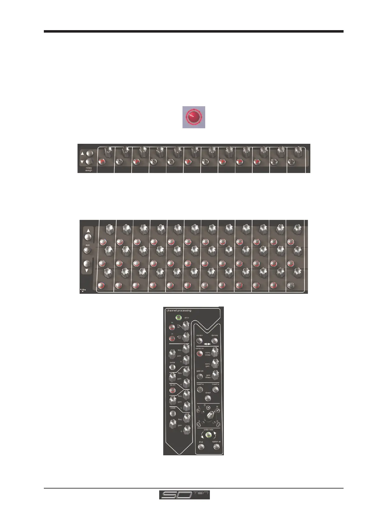 display through the remaining auxiliaries. The third row is assigned to channel pan by default.